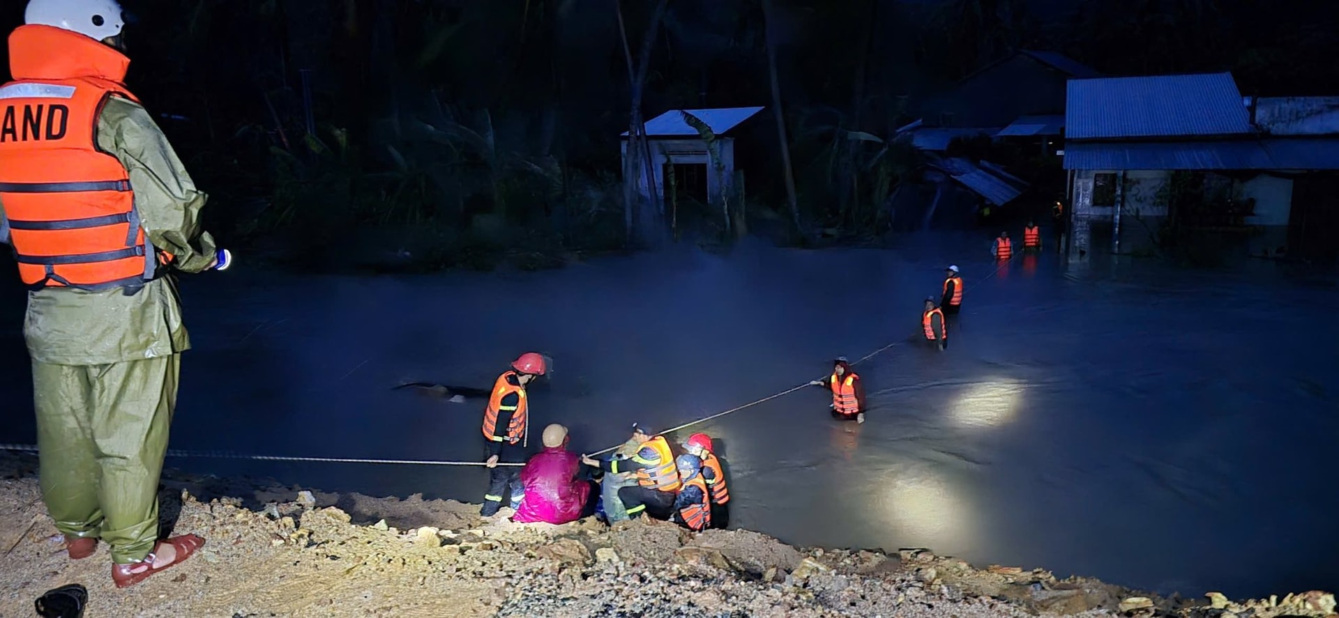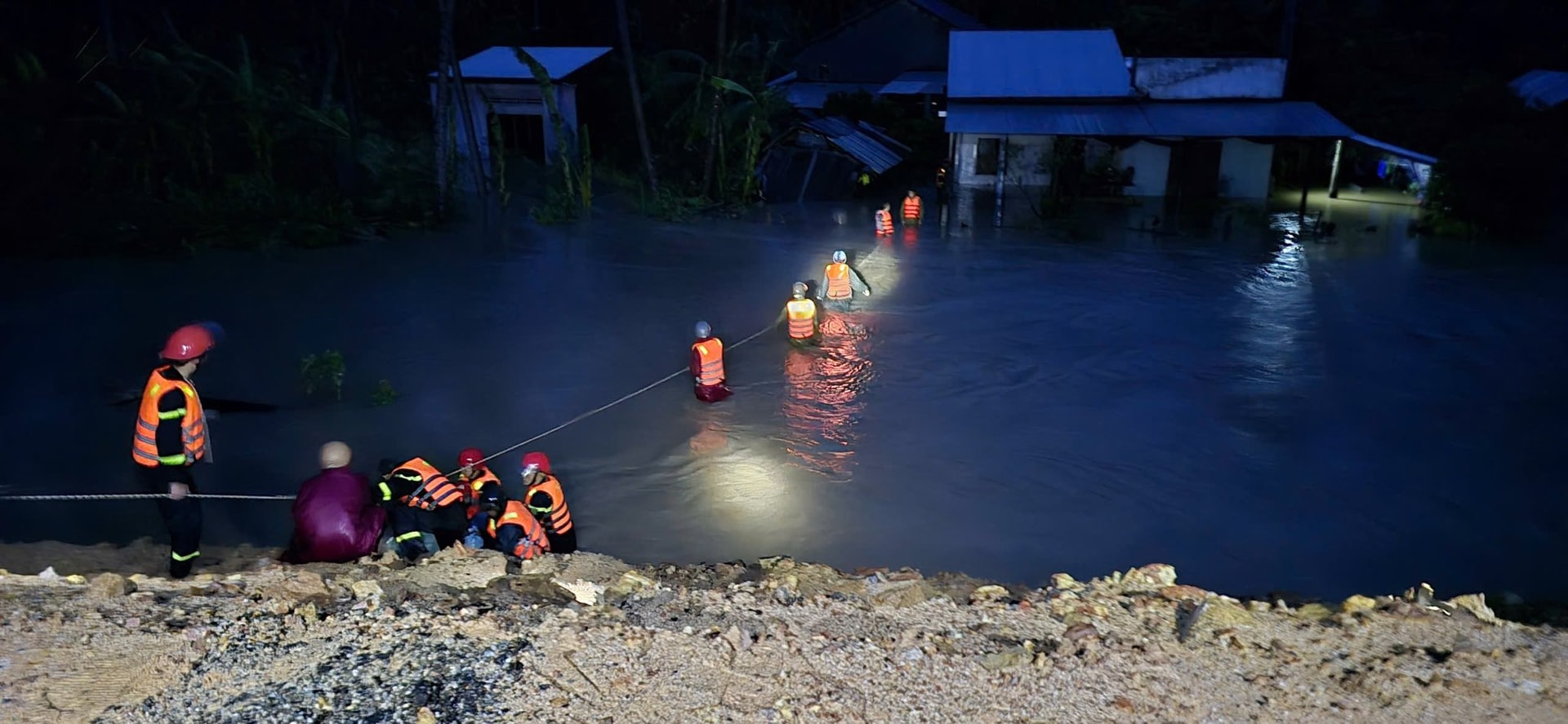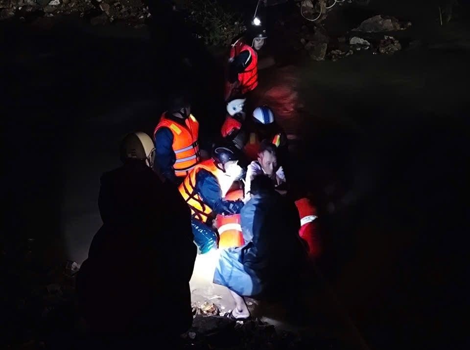 Công việc cứu hộ diễn ra trong đêm tối. Ảnh: Công an cung cấp
