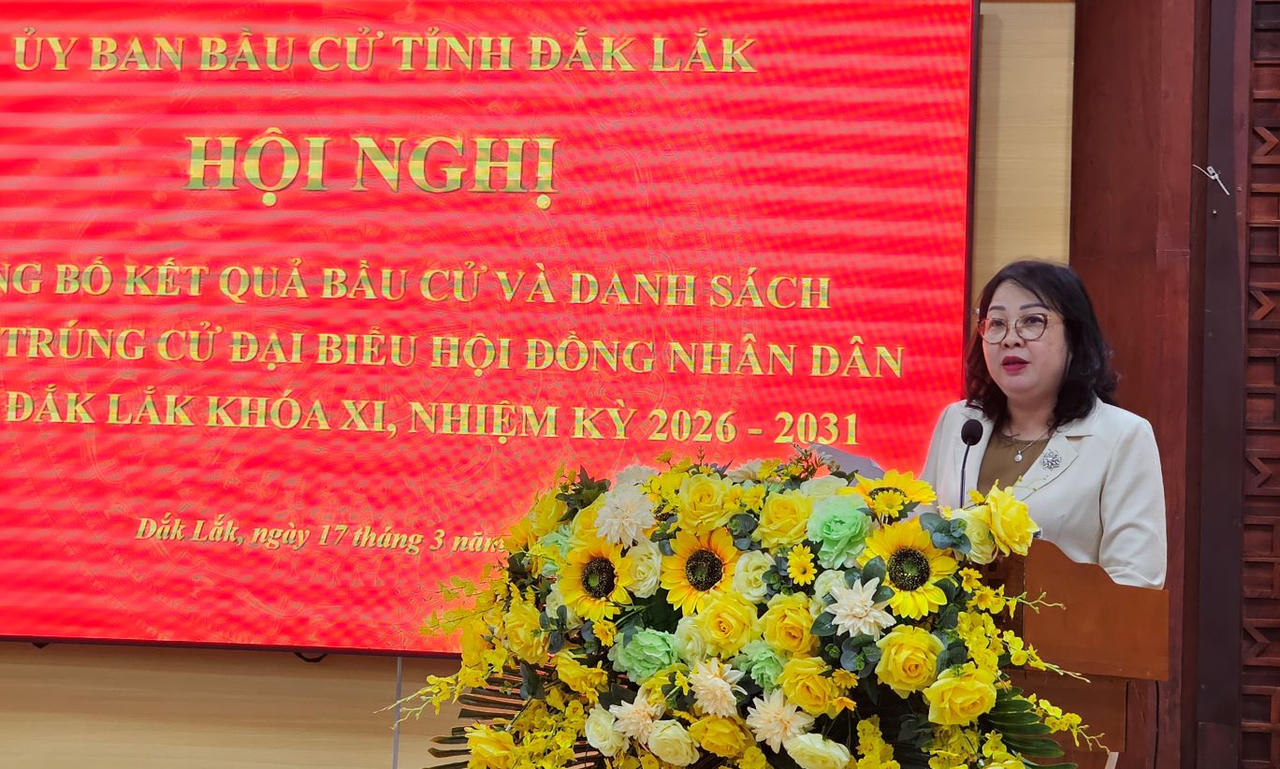 Bà Cao Thị Hòa An - Phó Bí thư Thường trực Tỉnh ủy, Chủ tịch HĐND tỉnh, Chủ tịch UBBC tỉnh Đắk Lắk đánh giá: cuộc bầu cử ĐBQH khóa XVI và đại biểu HĐND các cấp nhiệm kỳ 2026 – 2031 tỉnh Đắk Lắk đã được chuẩn bị và tổ chức nghiêm túc, dân chủ, đúng quy định pháp luật, đảm bảo an toàn và thành công tốt đẹp.
