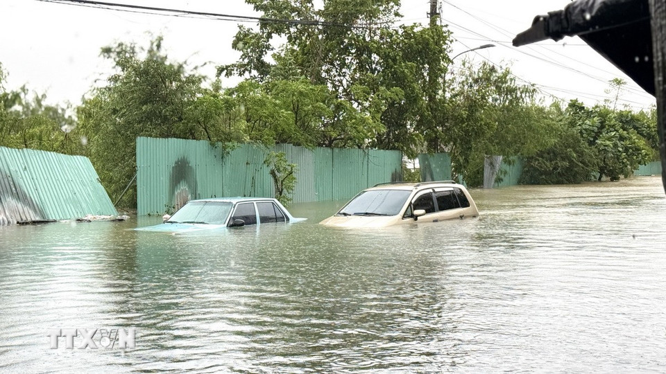 Nhiều phương tiện bị nhấn chìm. (Ảnh: Tường Quân/ TTXVN)