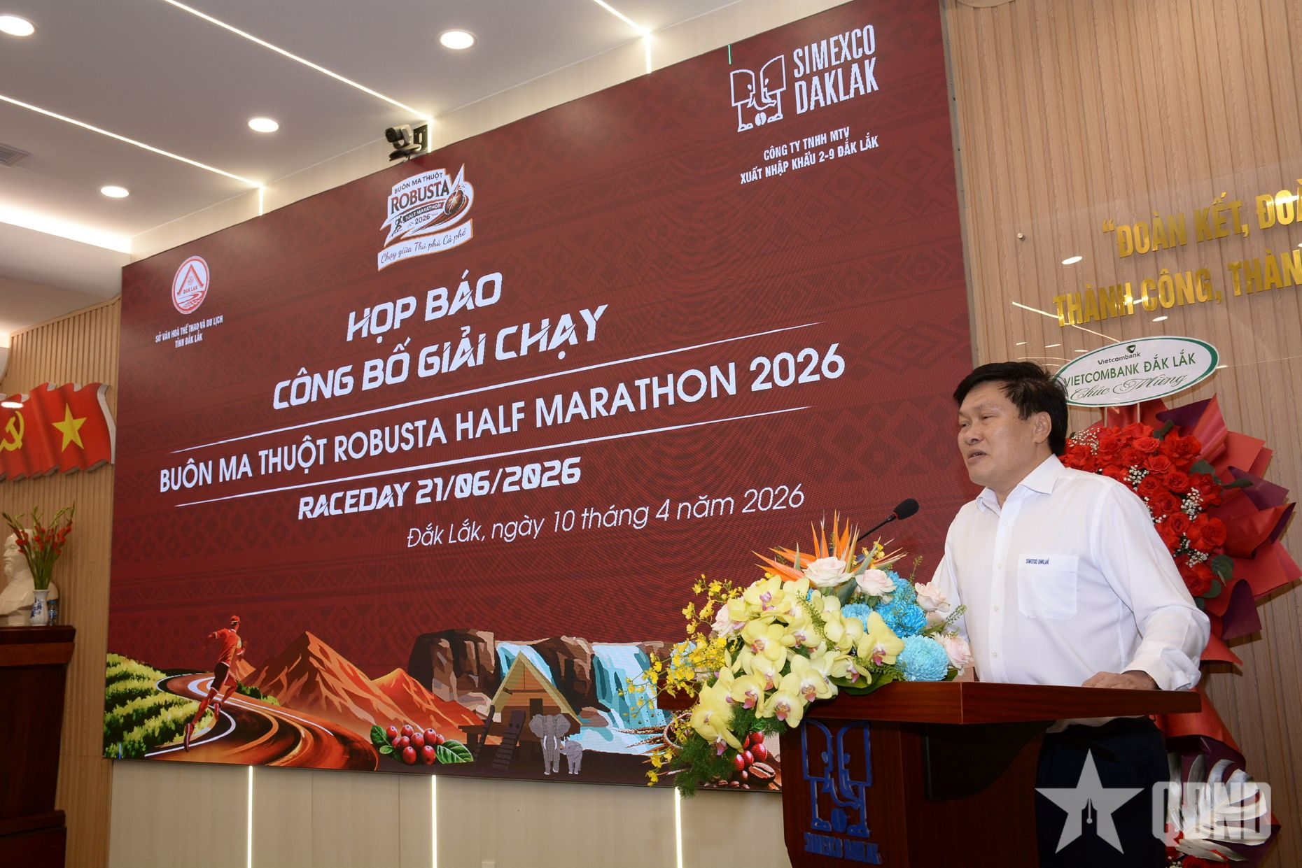 Ông Thái Anh Tuấn, Tổng giám đốc Công ty TNHH MTV Xuất nhập khẩu 2-9 Đắk Lắk thông tin về giải chạy.