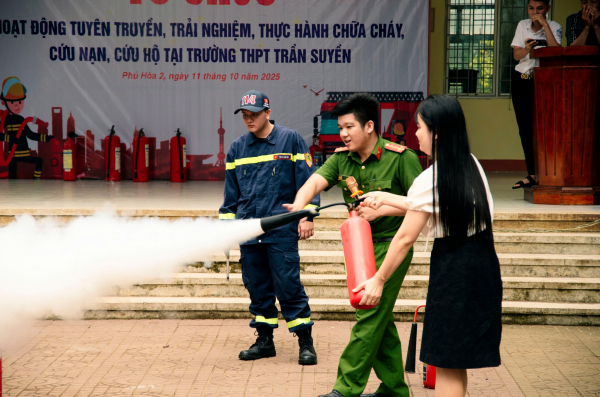 Là một trong những học sinh tham gia trải nghiệm và thực hành khi có tình huống cháy phát sinh, em Nguyễn Tiến Đạt, học sinh lớp 11A1 bày tỏ: “Lần đầu tiên được tham gia hoạt động này, em thật sự phấn khích vì không chỉ được trang bị thêm những kiến thức cơ bản trong PCCC&CNCH, mà còn được trải nghiệm, thực hành kỹ năng chứa cháy, thoát nạn, sơ cứu người bị nạn để chủ động vận dụng khi vấp phải những tình huống cháy xảy ra”. Còn em Mai Lê Thu Trang, học sinh lớp 12A2 chia sẻ: “Từ hoạt động này, mỗi học sinh nhà trường cần có trách nhiệm tuyên truyền phổ biến kiến thức pháp luật và hướng dẫn kỹ năng thoát nạn, chữa cháy, sơ cứu cho người thân và gia đình để tạo sự lan tỏa sâu rộng, góp phần nâng cao hiệu quả PCCC&CNCH tại cộng đồng”.