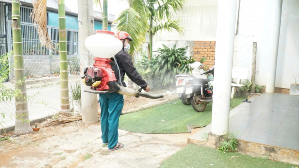 Phun khử khuẩn nơi phát hiện nguồn bệnh.