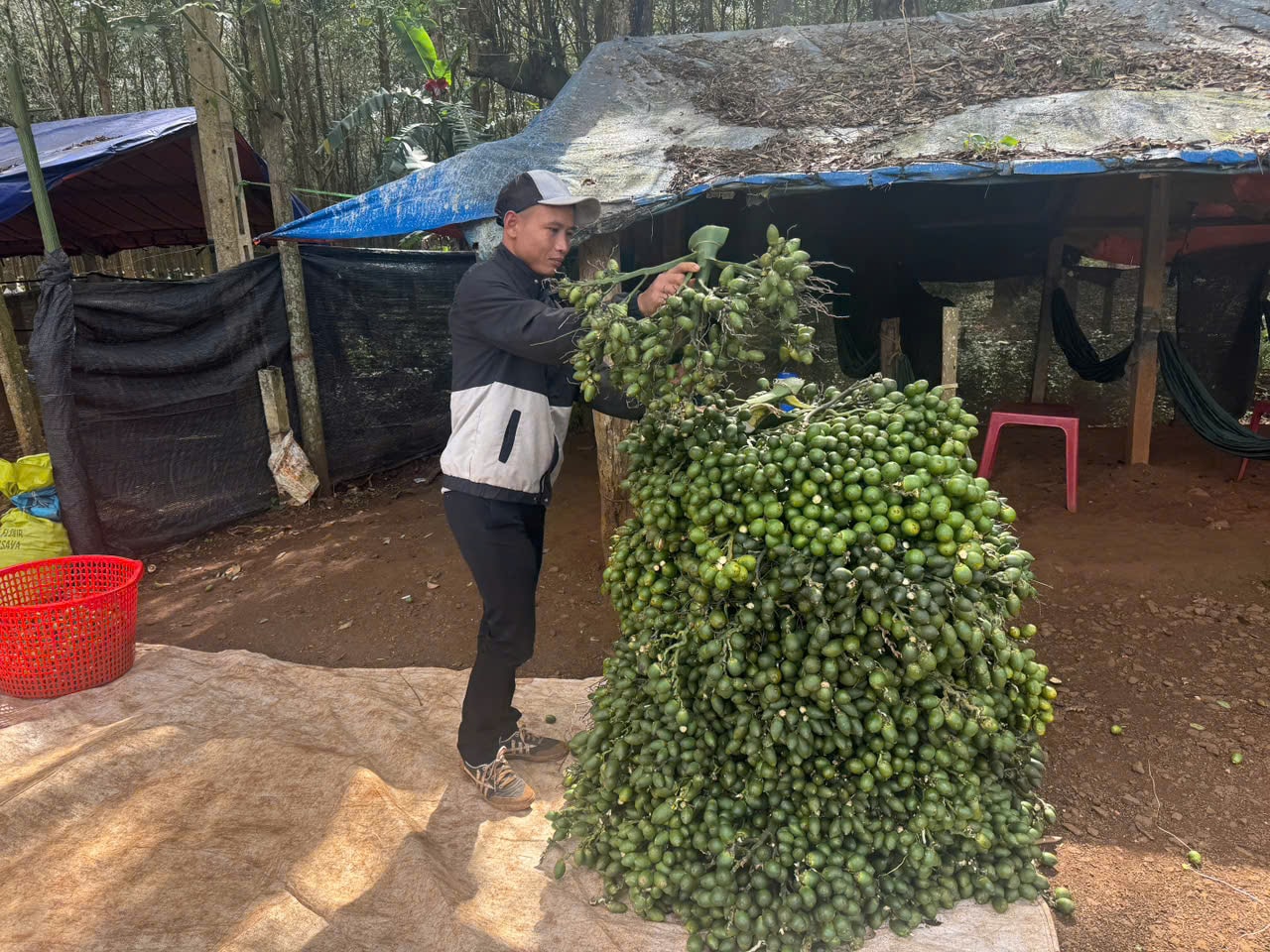 Thương lái thu mua cau tươi tại một vựa trên địa bàn tỉnh Đắk Lắk.