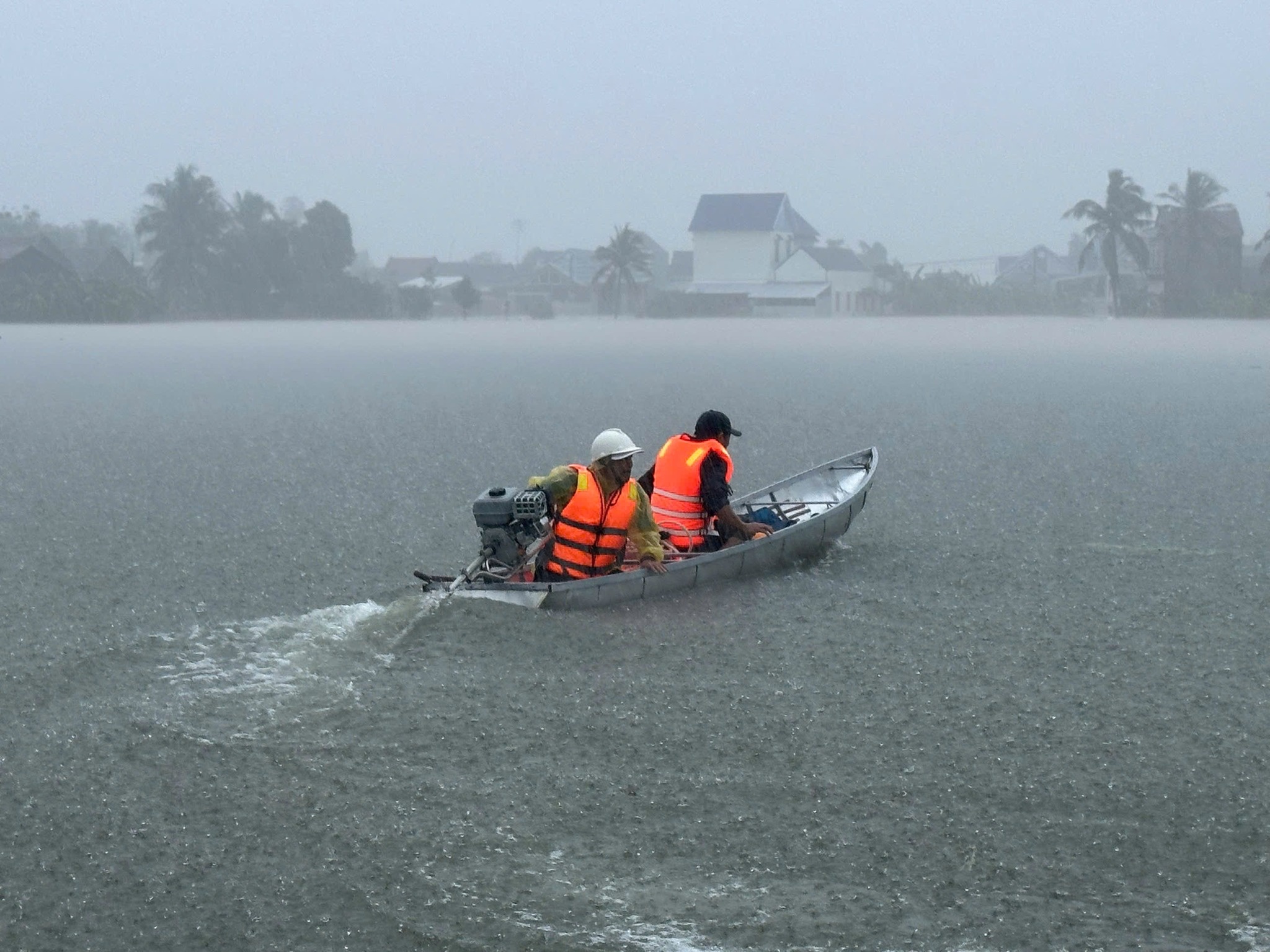 Giữa tình hình mưa lũ nghiêm trọng ở khu vực phía đông, công an tỉnh Đắk Lắk đã huy động tối đa lực lượng, phương tiện, triển khai hàng trăm tổ công tác đến địa bàn phối hợp dân quân, lực lượng bảo vệ ANTT ở cơ sở và chính quyền địa phương, đội mưa khẩn trương triển khai công tác cứu nạn, cứu hộ, đưa nhiều người dân đến khu vực an toàn. Ảnh: Công an tỉnh Đắk Lắk.