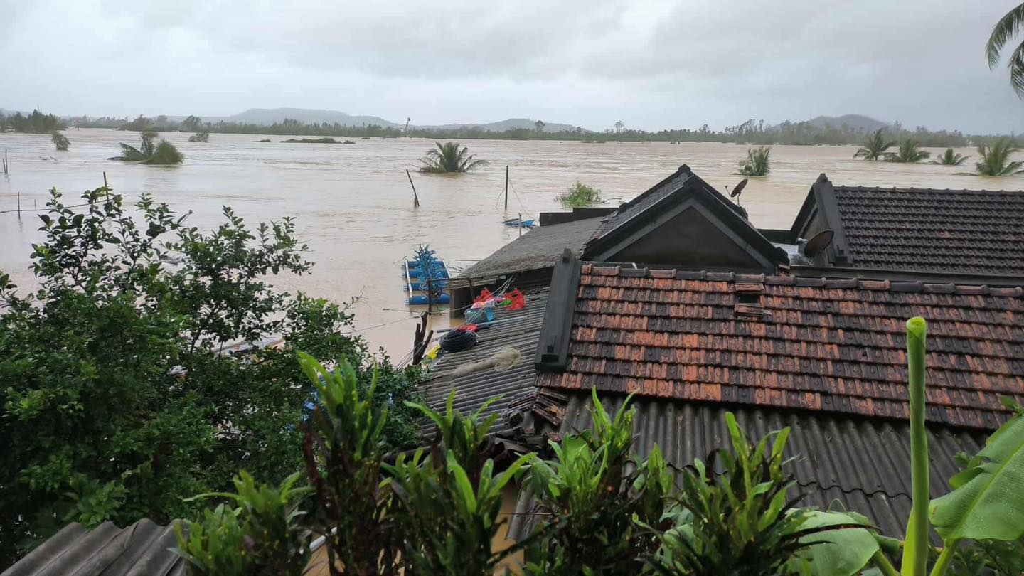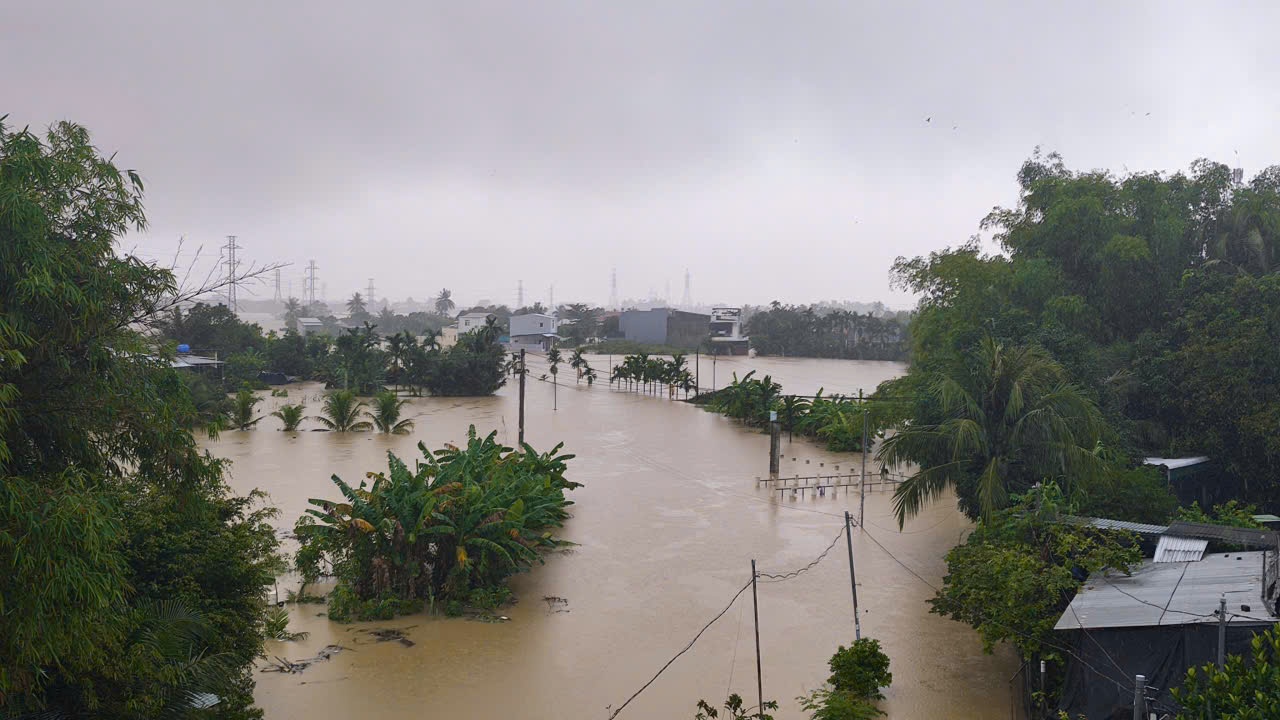 Hàng trăm căn nhà tại khu vực Sông Cầu (Phú Yên cũ) chìm trong biển nước. Trước đó không lâu, cơn bão số 13 (Kalmaegi) đổ bộ vào đất liền tối 6/11 đã khiến nhiều tài sản của người dân tại đây bị hư hại. Ảnh: Sông Cầu Trong Tôi.
