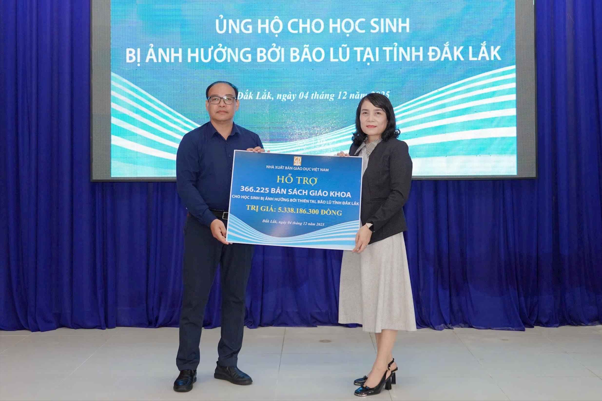 Phó Tổng Giám đốc Nhà xuất bản Giáo dục Việt Nam Đặng Thanh Hải cho biết: Đợt mưa lũ lịch sử vừa qua đã khiến nhiều học sinh tại Đắk Lắk mất hoặc hư hỏng toàn bộ sách học. Xuất phát từ tinh thần sẻ chia, đơn vị đã nhanh chóng triển khai kế hoạch hỗ trợ nhằm đồng hành với thầy và trò tại các trường vùng bị ảnh hưởng.