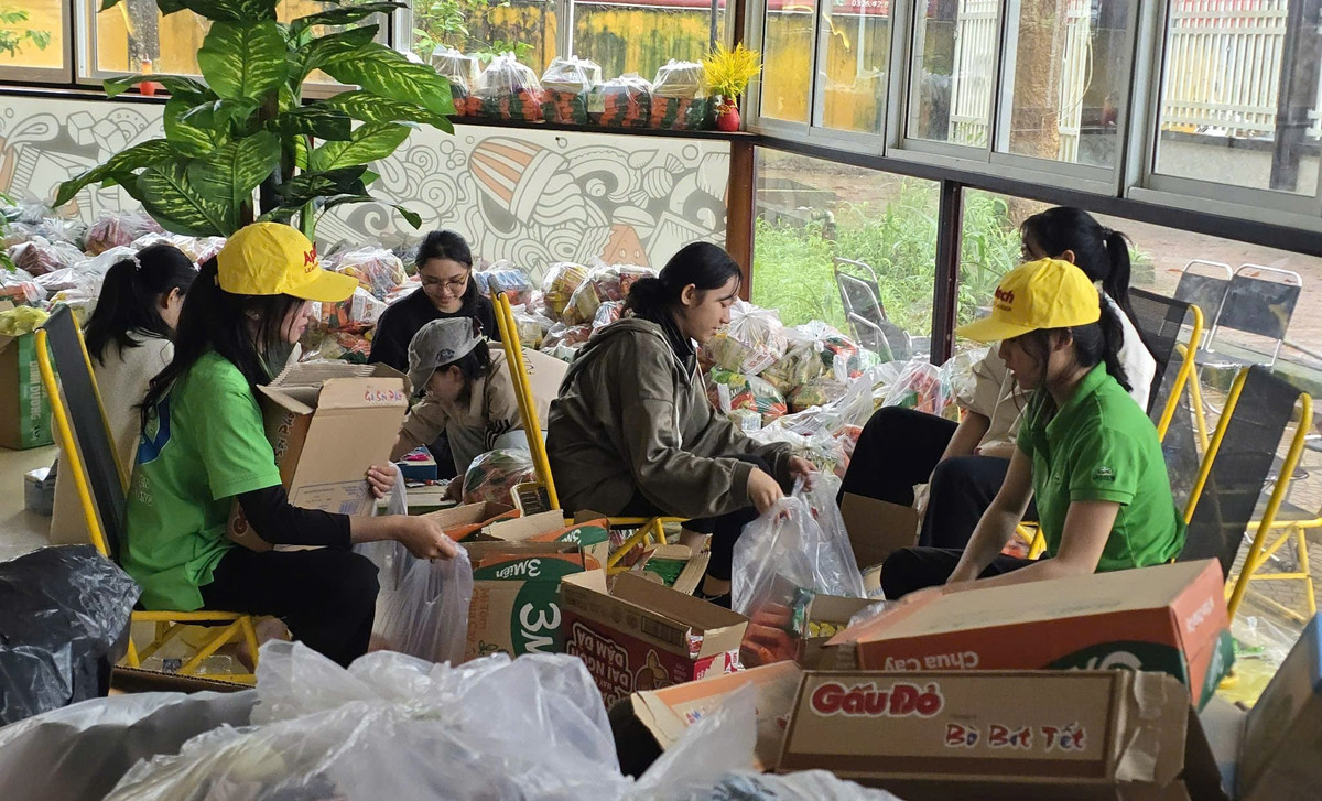 Cũng tại điểm tiếp nhận, nhiều học sinh trên địa bàn cũng tình nguyện tham gia gói các phần quà như: Thuốc, quần áo, mì tôm, nước suối, bánh mì… giúp việc phân phát diễn ra nhanh và đến đúng tay người dân. Những việc làm giản dị ấy góp phần lan tỏa tinh thần sẻ chia trong lúc mưa lũ còn diễn biến phức tạp.