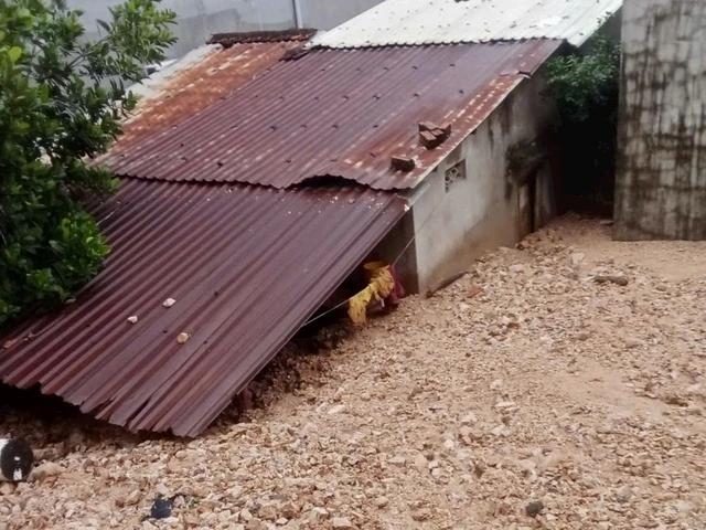 Lượng đất đá lớn tràn vào nhiều nhà dân.