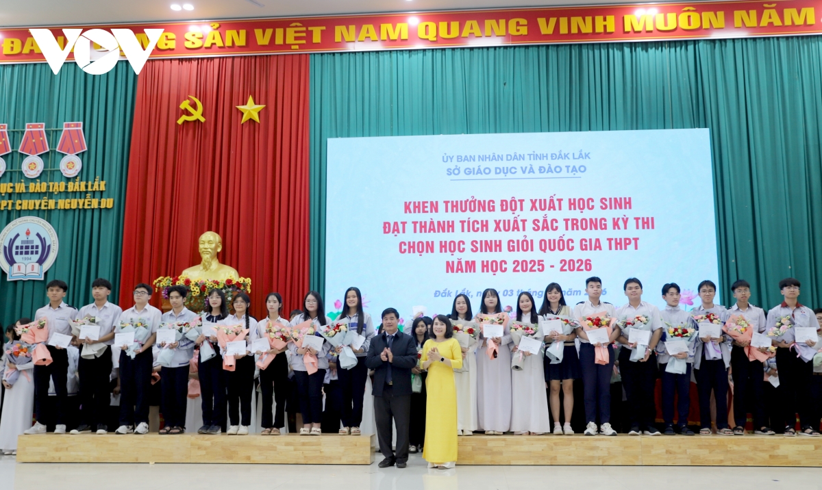 Trong kỳ thi chọn học sinh giỏi quốc gia THPT năm học 2025 - 2026, đội tuyển học sinh giỏi tỉnh Đắk Lắk đã giành 114 giải, gồm 3 giải Nhất, 21 giải Nhì, 34 giải Ba và 56 giải Khuyến khích, xếp thứ 12/34 tỉnh, thành phố trong cả nước.