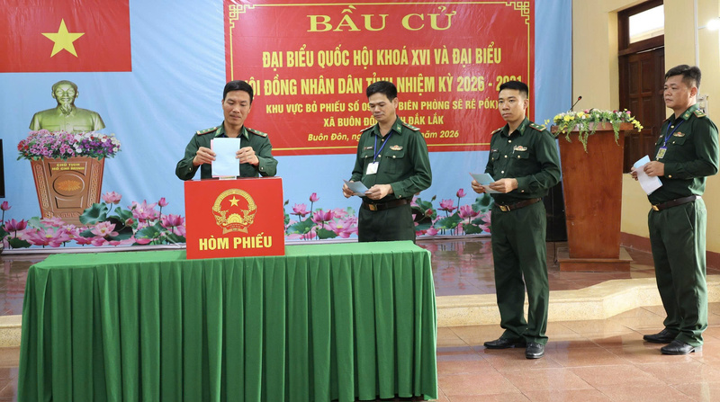 Đúng 6 giờ 30 sáng ngày 14/3, cán bộ, chiến sĩ của 11 đơn vị thuộc Công an tỉnh và Bộ Chỉ huy Quân sự tỉnh Đắk Lắk đã đồng loạt tham gia bỏ phiếu bầu đại biểu Quốc hội khóa XVI và đại biểu HĐND các cấp, nhiệm kỳ 2026–2031.