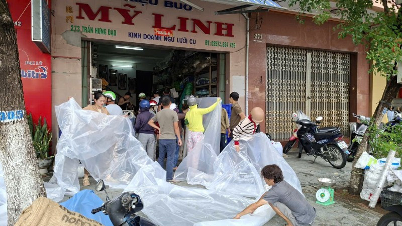 Người dân phường Tuy Hòa mua ni-lông về che đậy nhà cửa, tài sản ứng phó với bão 13.