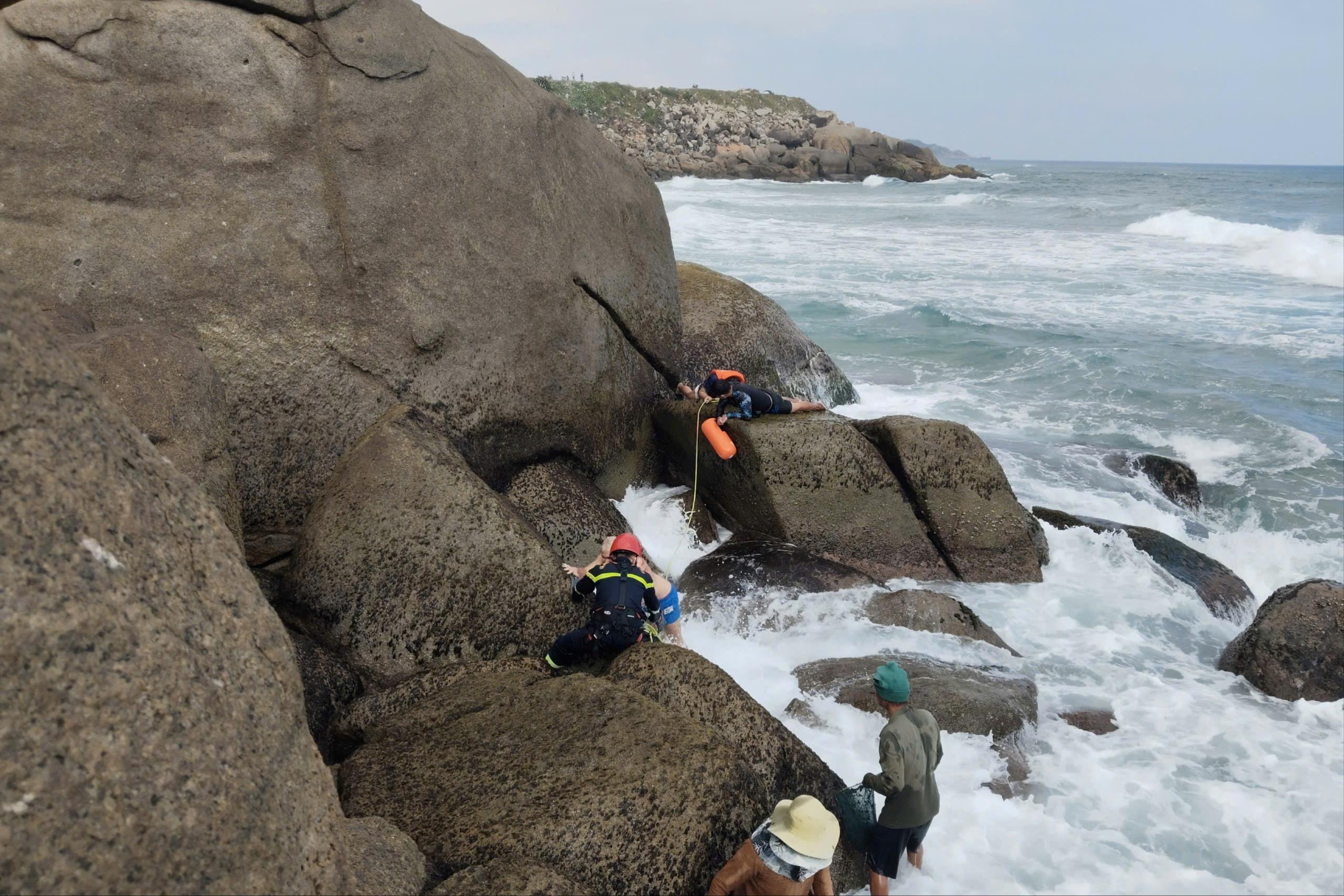 Lực lượng cứu hộ tiếp cận khu vực ghềnh đá hiểm trở, đưa du khách ra khỏi vùng sóng dữ