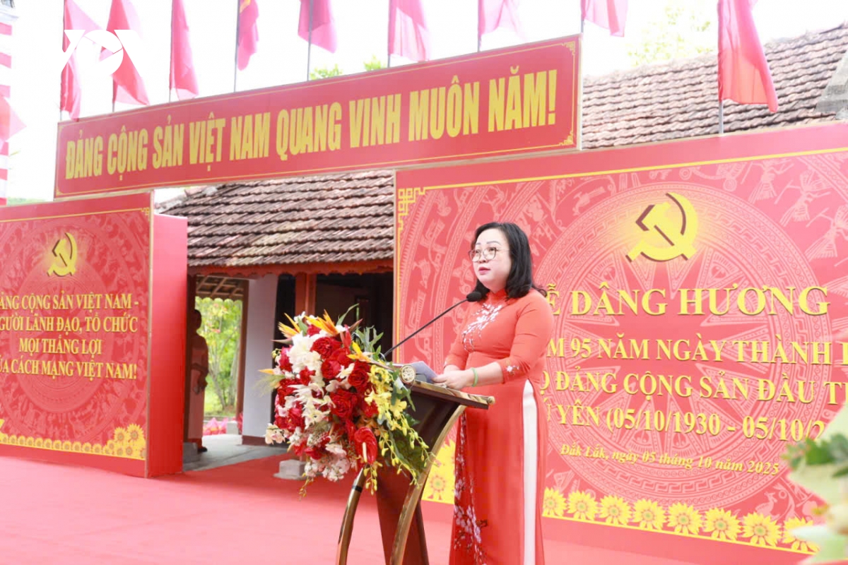 Phát biểu tại buổi lễ, Phó Bí thư Thường trực Tỉnh ủy, Chủ tịch HĐND tỉnh Đắk Lắk Cao Thị Hòa An ôn lại chặng đường 95 năm kể từ khi Chi bộ Đảng Cộng sản đầu tiên của Phú Yên ra đời ngày 5/10/1930 tại xóm Đồng Bé, thôn Phước Long, xã Xuân Long, huyện Đồng Xuân, nay thuộc xã Đồng Xuân, tỉnh Đắk Lắk. Chi bộ khi đó có 9 đảng viên, do ông Phan Lưu Thanh làm bí thư.
