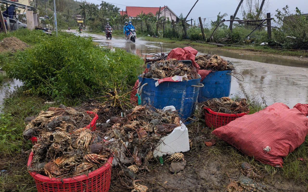 Số ít tôm hùm người dân vớt được sau tai ương với hi vọng bán thu lại ít vốn. Song, giá chỉ còn dưới 100 nghìn đồng/kg, trong khi ngày thường phải từ 700-800 nghìn đồng/kg. Người nuôi tôm ở Sông Cầu đứng trước tình cảnh trắng tay.