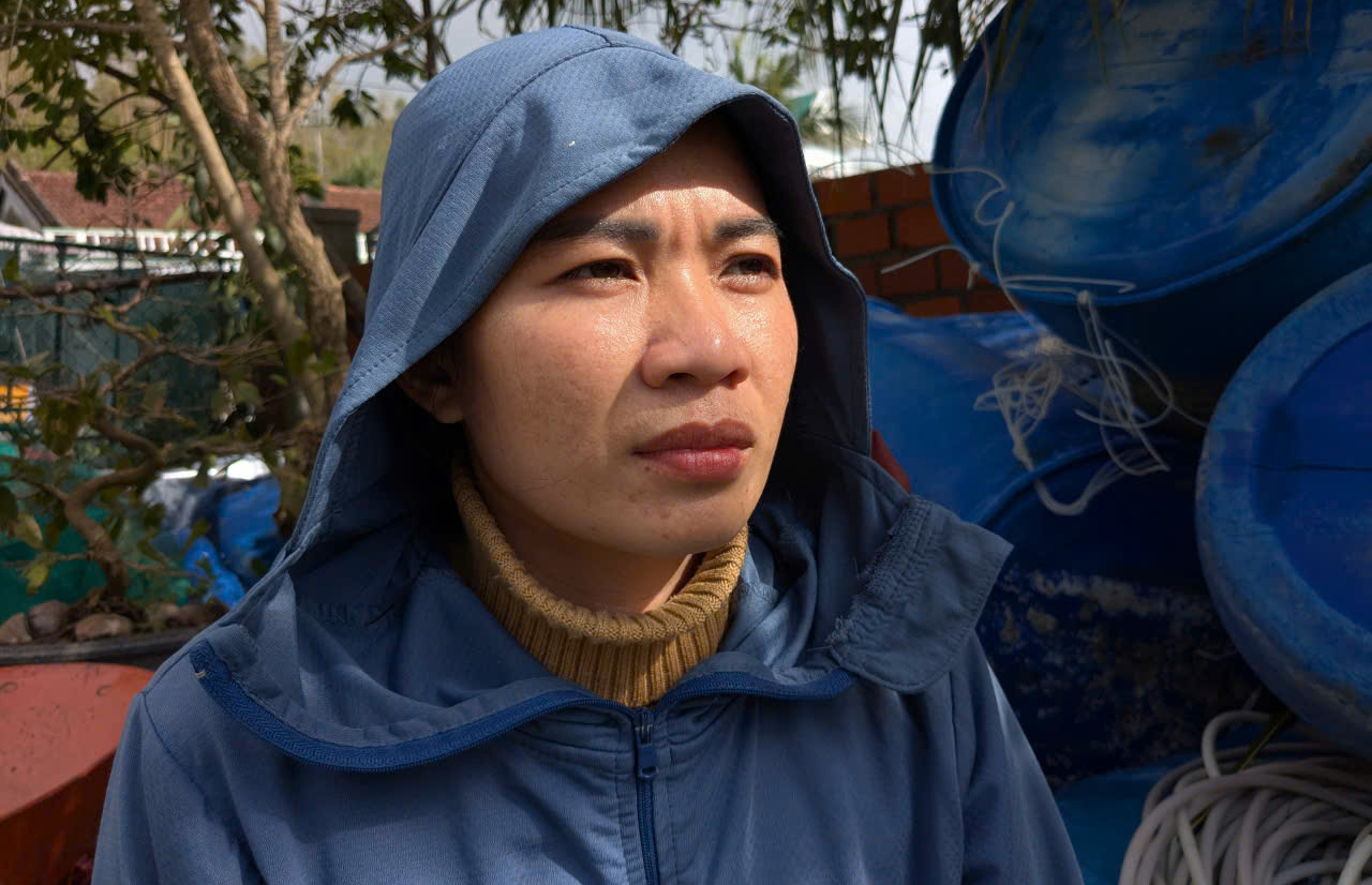 Người dân làng chài bên vịnh Xuân Đài thất thần vì bao của cải dồn hết vào những lồng bè nuôi tôm, nuôi cá giờ tan thành bọt biển (Trong ảnh: Chị Trương Thị Tuyết Dân (34 tuổi), tổ dân phố Phú Mỹ, phường Sông Cầu, như không gượng dậy nổi vì thiệt hại nhiều tỷ đồng).