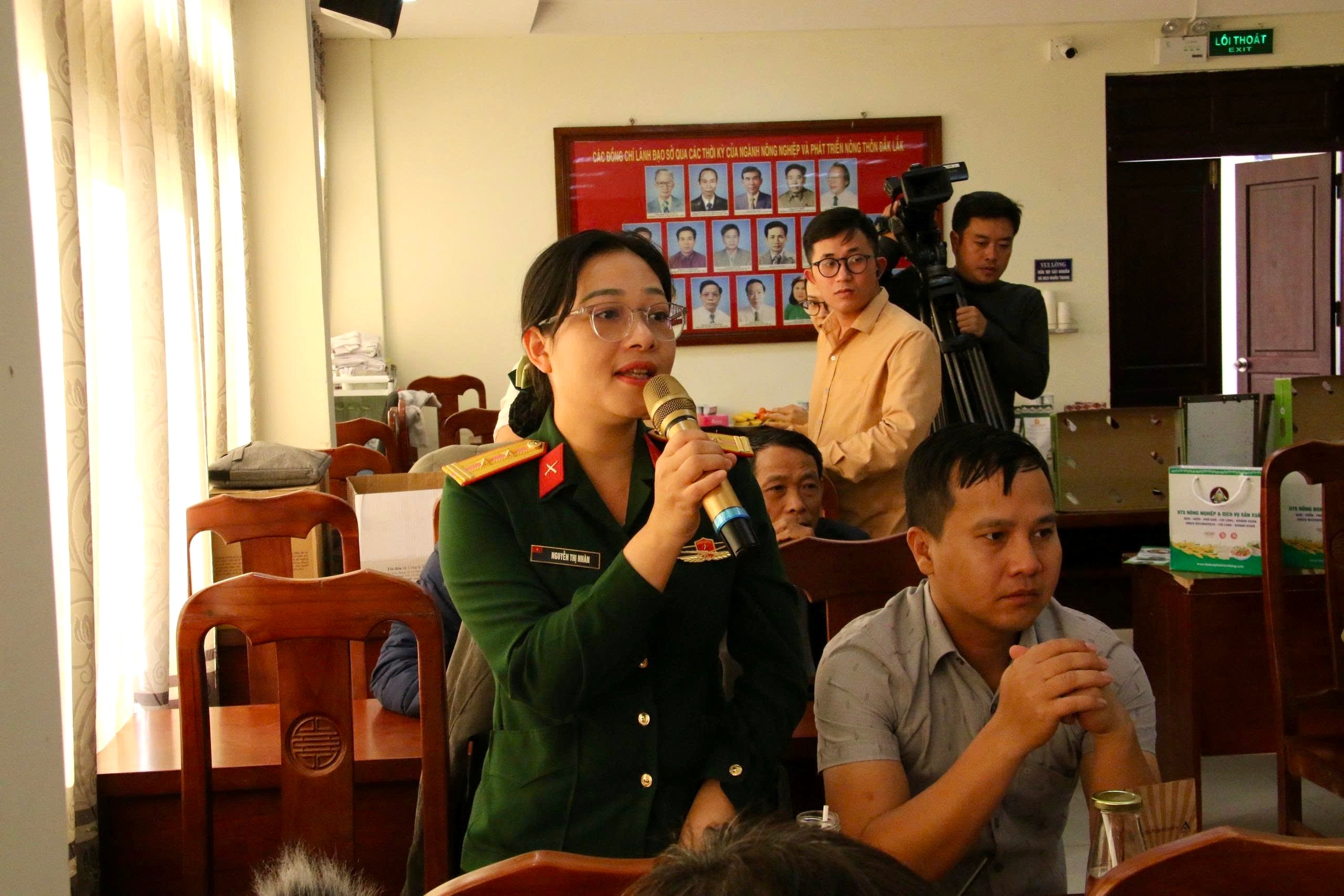 Đại diện Công ty TNHH MTV Cà phê 15 (Quân khu 5), trao đổi với Hội đồng đánh giá, phân hạng sản phẩm OCOP cấp tỉnh