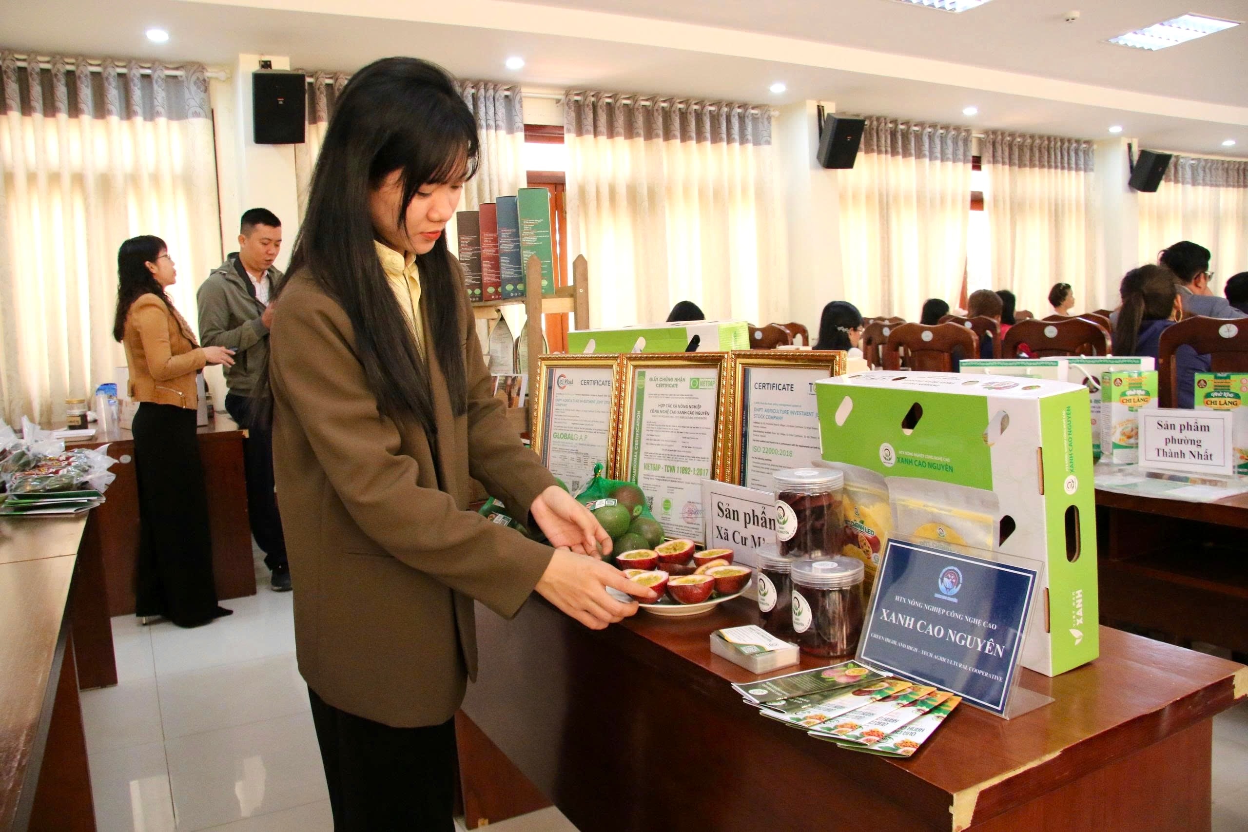 Các sản phẩm từ quả chanh leo của HTX nông nghiệp công nghệ cao Xanh Cao Nguyên tham gia đánh giá phân hạng sản phẩm OCOP của tỉnh Đắk Lắk năm 2025