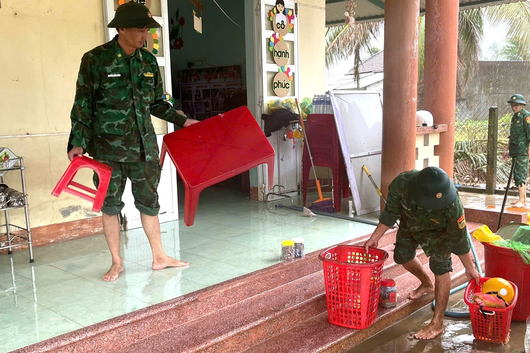 Lực lượng bộ đội dọn dẹp các trường học. Ảnh: TQ