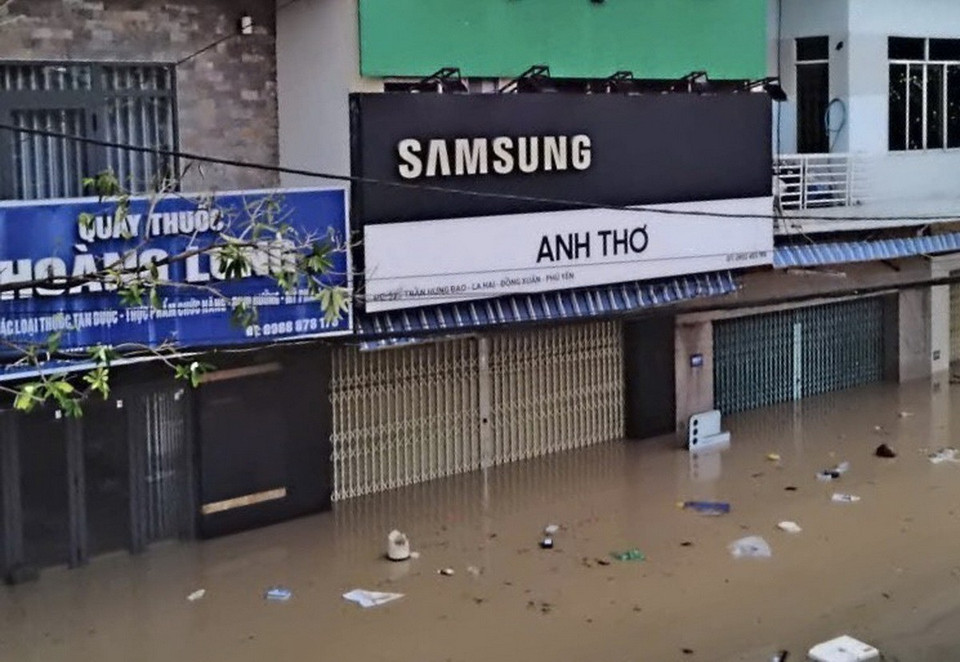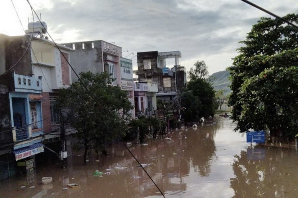 Nhiều tuyến đường tại khu vực huyện Đồng Xuân cũ bị ngập sâu. (Ảnh: Tường Quân/TTXVN)