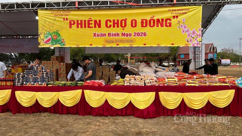 Ngày 7/2, Sở Công Thương Đắk Lắk tổ chức Phiên chợ 0 đồng Xuân Bính Ngọ năm 2026 tại địa bàn xã Buôn Đôn, phường Hòa Hiệp với quy mô mỗi xã 500 suất quà cho người dân thuộc hộ nghèo; hộ cận nghèo; gia đình chính sách; người lao động có hoàn cảnh khó khăn, thu nhập thấp nhất là các hộ bị ảnh hưởng bởi thiên tai, bão lũ ổn định cuộc sống. Phiên chợ này được tổ chức với sự hỗ trợ của chính quyền địa phương, trong đó có lực lượng biên phòng.
