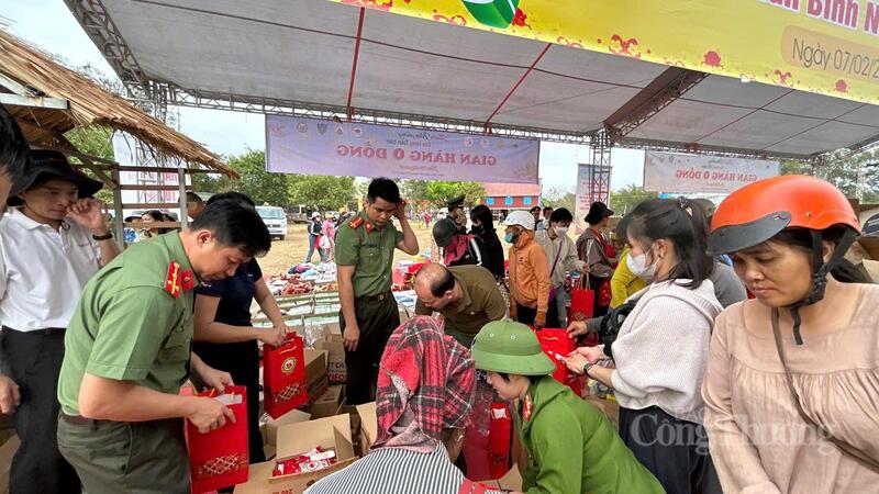 Ngoài nhận 9 phần quà tại phiên chợ 0 đồng, người dân còn nhận thêm phần quà do lực lượng công an địa phương trao tặng