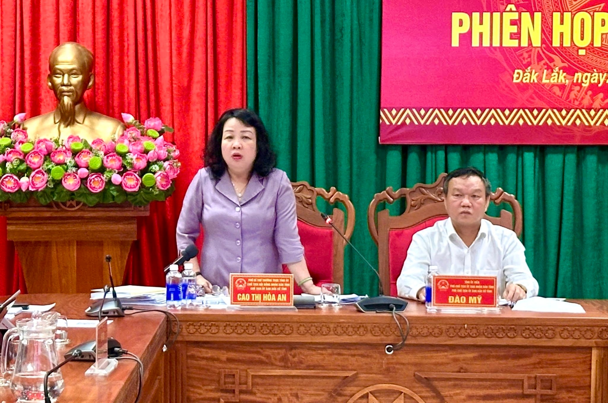 Phó Bí thư Thường trực Tỉnh ủy, Chủ tịch HĐND tỉnh, Chủ tịch UBBC tỉnh Cao Thị Hòa An phát biểu kết luận phiên họp.