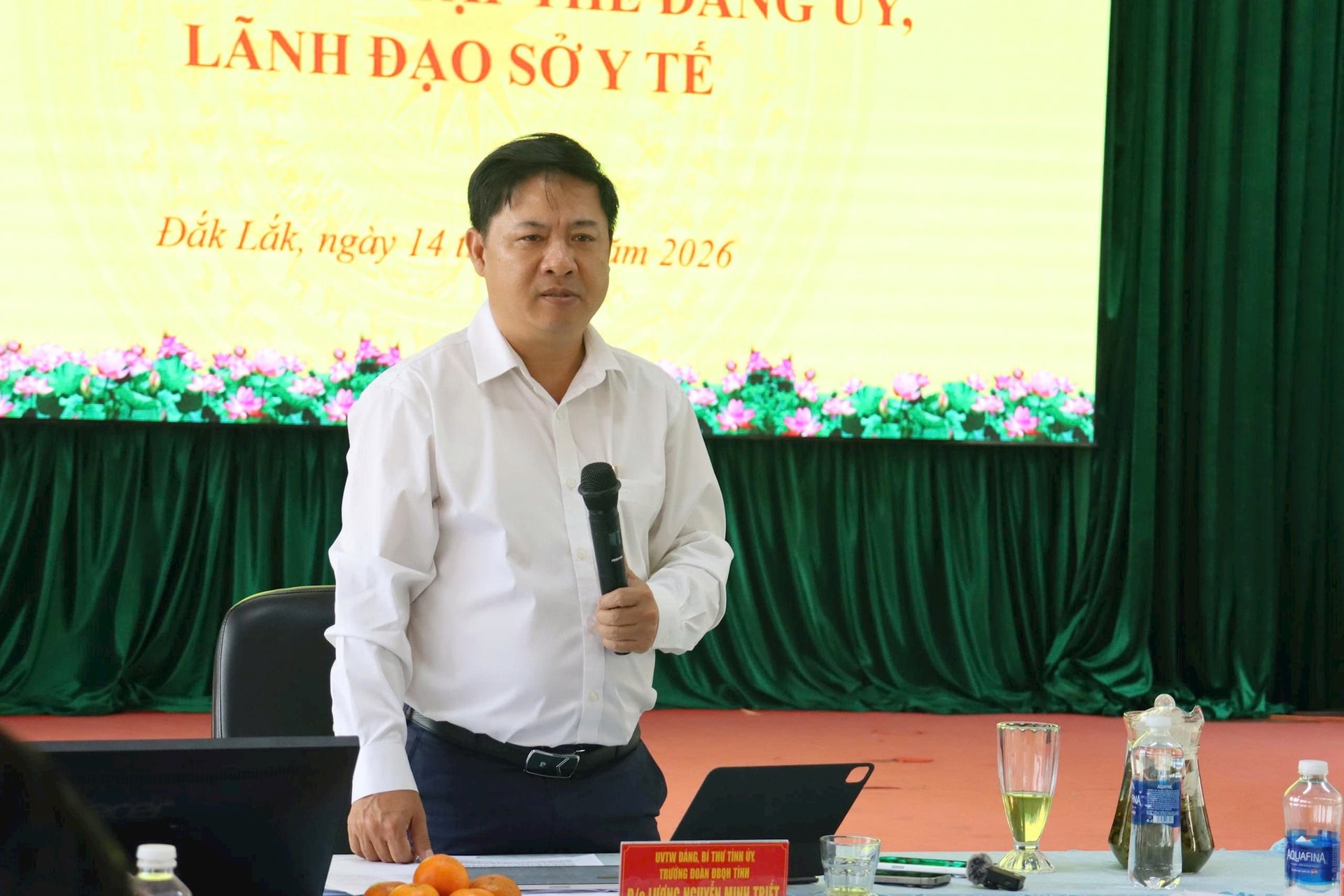 Bí thư Tỉnh ủy Đắk Lắk Lương Nguyễn Minh Triết phát biểu hôm làm việc với Đảng ủy, lãnh đạo Sở Y tế