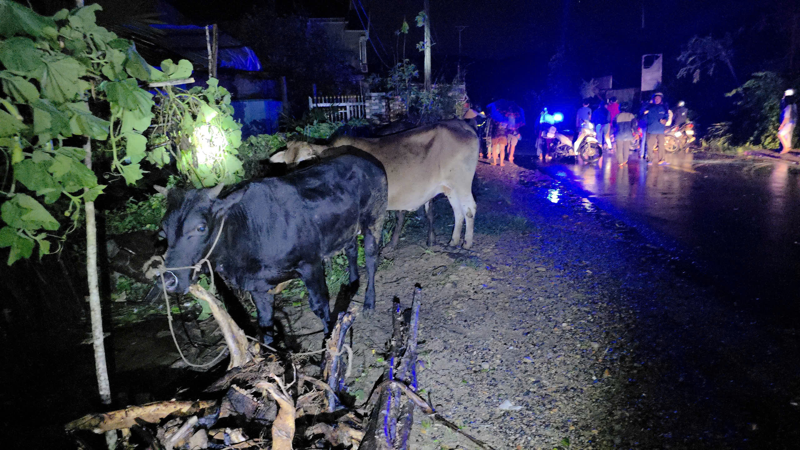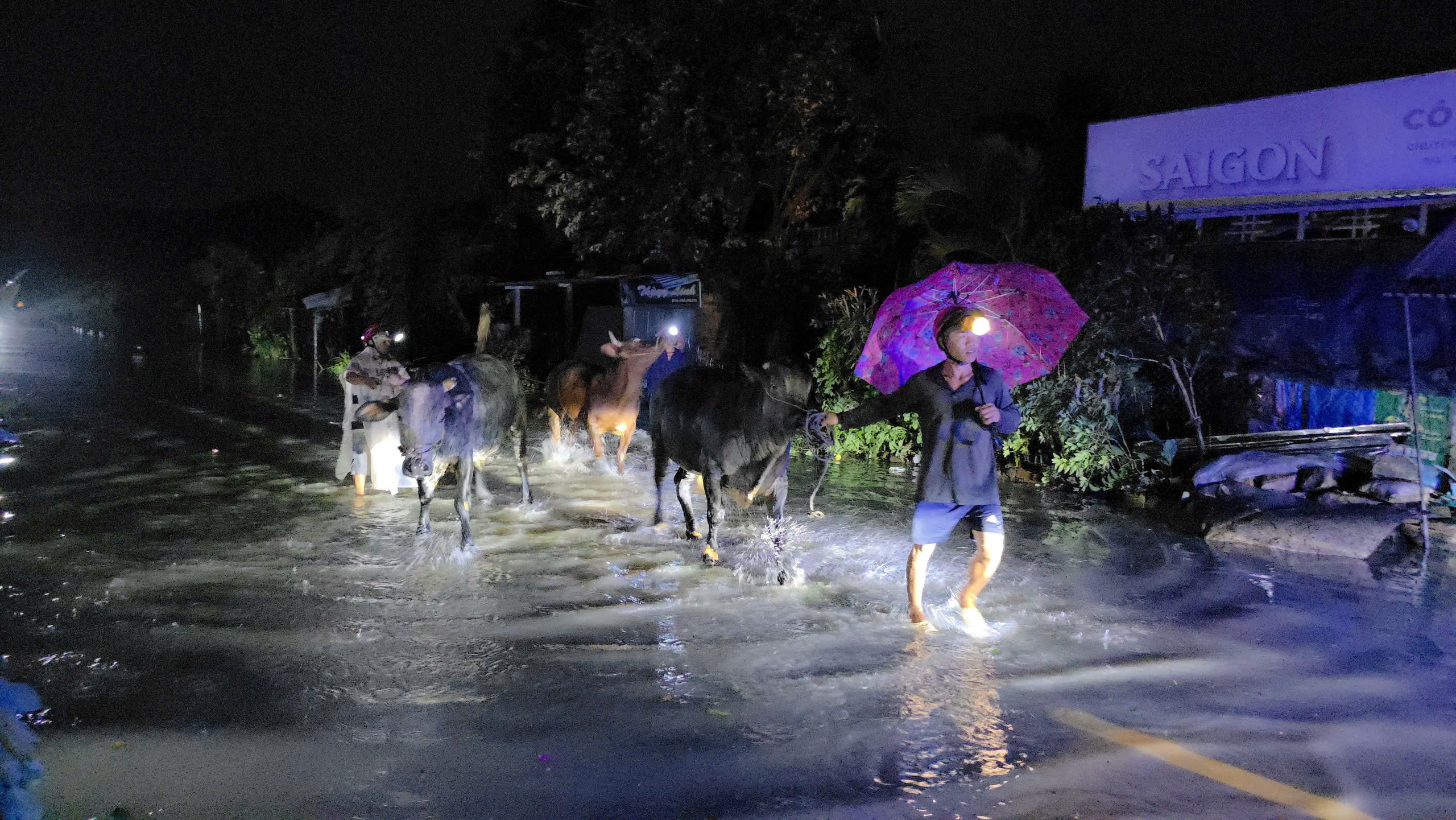 Người dân đưa trâu bò đến khu vực cao để tránh trú