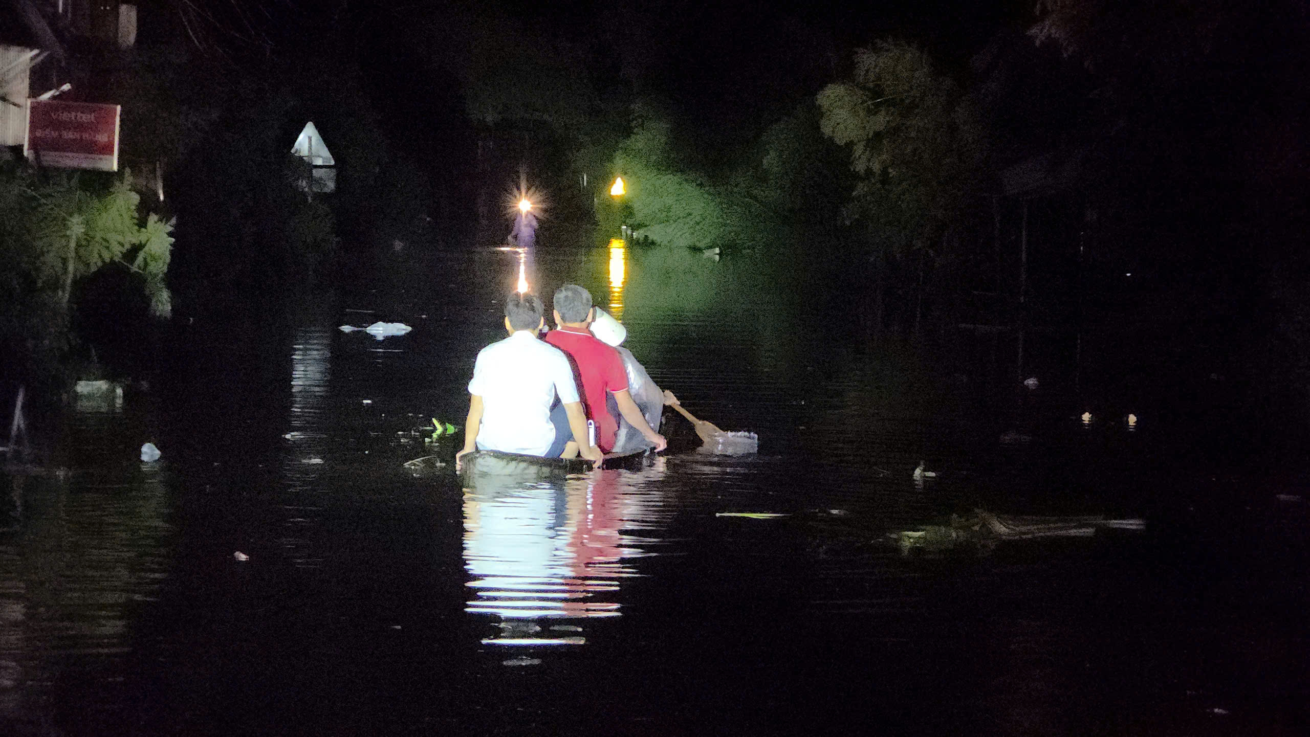 Mực nước ở thôn Phước Nhuận liên tục dâng cao gây ngập nhiều nhà dân.
