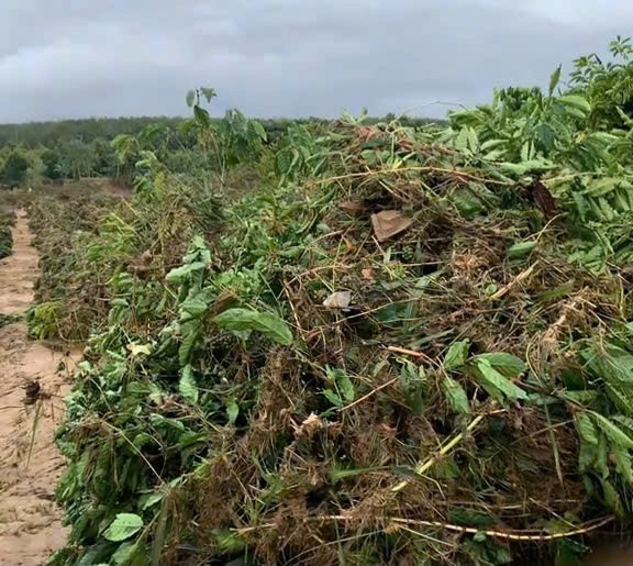 Nhiều cây cà phê chìm gần hết tán, đối mặt nguy cơ rụng quả và suy kiệt sau lũ rất cao. Một số khu vực trước đây hiếm khi bị ngập nay cũng chìm trong dòng nước lũ. Hệ thống tưới, ống dẫn nước và các vật dụng sản xuất bị hư hỏng hoặc trôi theo dòng nước.