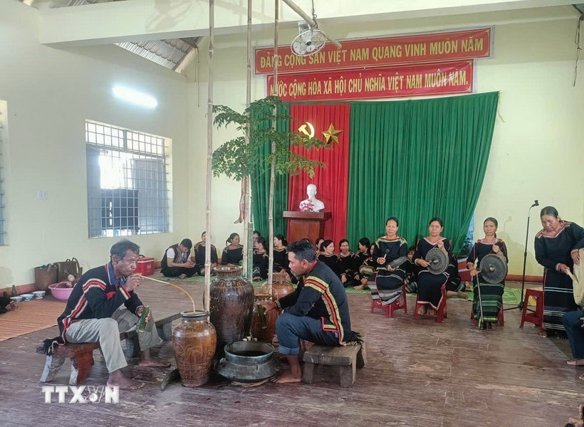 Quang cảnh Lễ mừng thọ của người M’nông. (Ảnh: TTXVN phát)