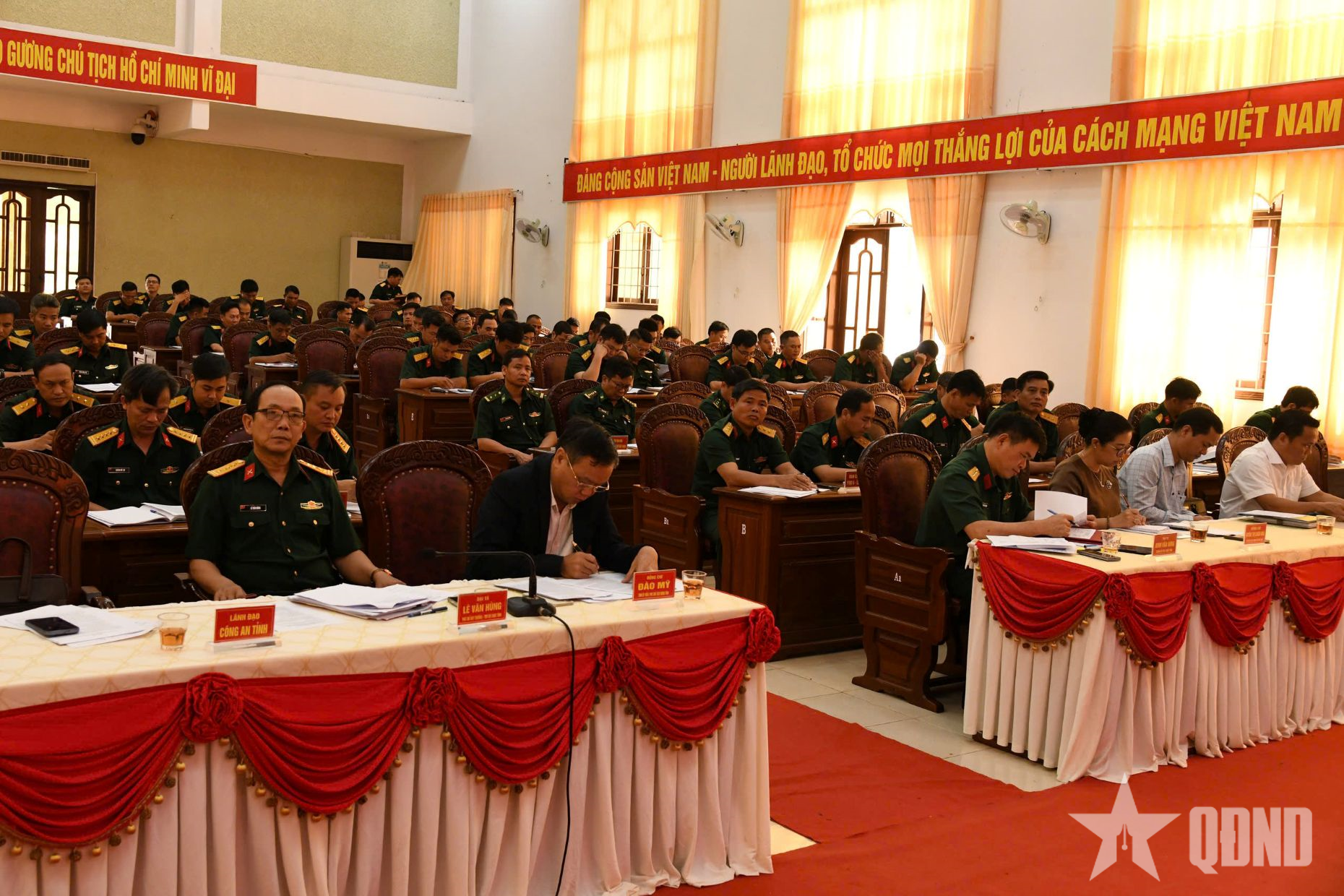 Đồng chí Huỳnh Thị Chiến Hòa, Phó bí thư Tỉnh ủy; Đào Mỹ, Phó chủ tịch UBND tỉnh; Đại tá Đinh Văn Hưng, Chính ủy Bộ CHQS tỉnh Đắk Lắk; đại diện lãnh đạo các cơ quan chuyên môn Quân khu 5 và các đại biểu tham dự hội nghị.