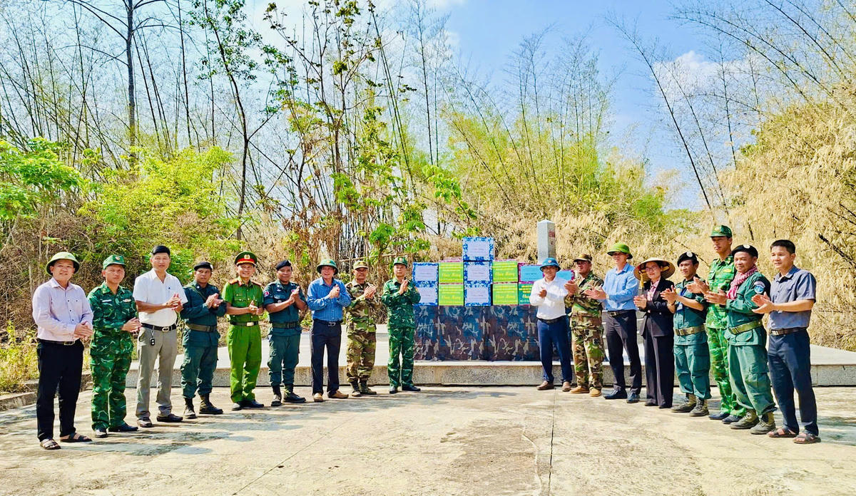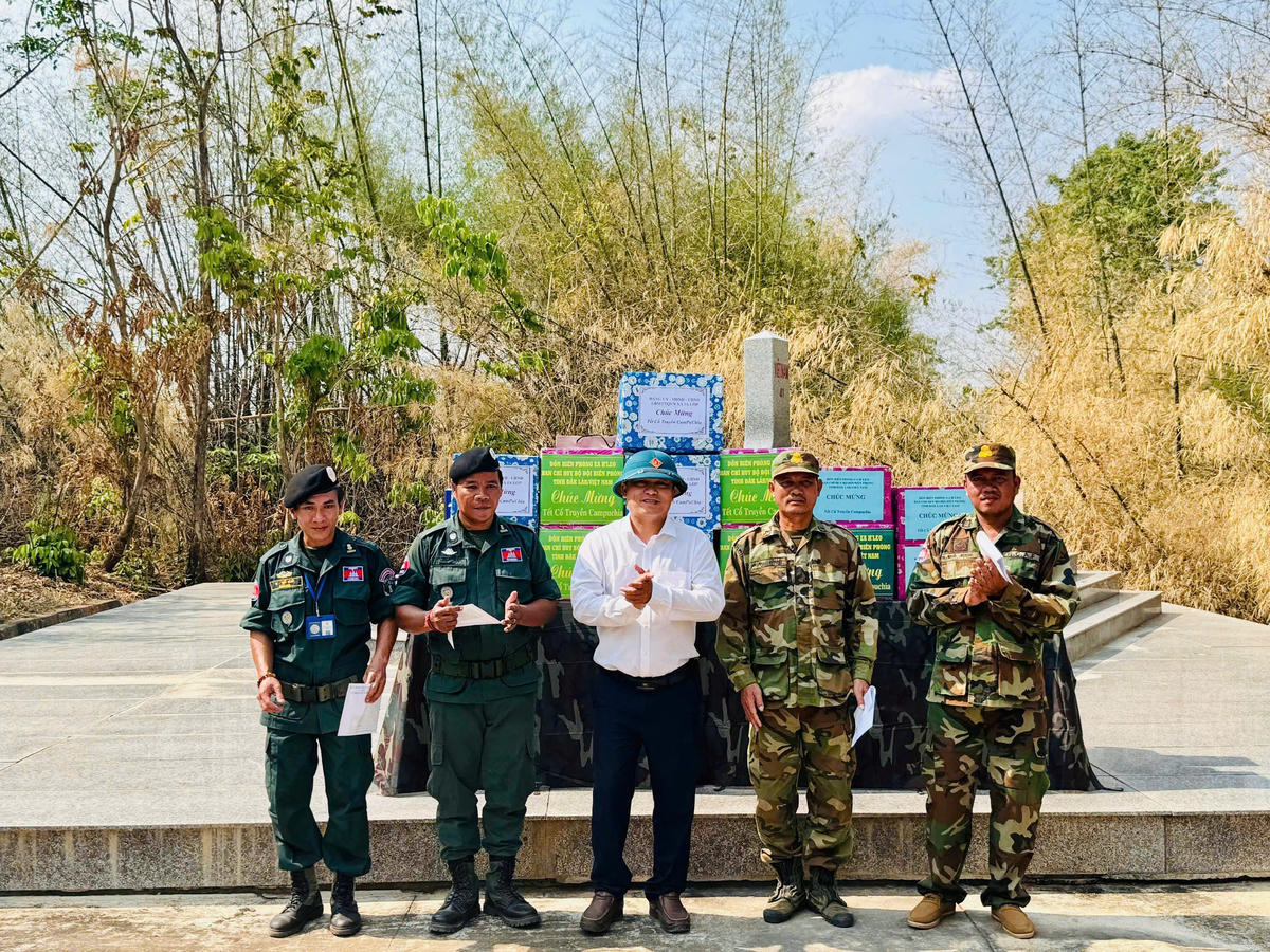 Đoàn đại biểu xã Ia Lốp và Đồn biên phòng Ea H'lep thăm, tặng quà, chúc tết các đơn vị Đồn, chốt cảnh sát bảo vệ biên giới Campuchia tại mốc quốc giới số 41. Ảnh: BP.