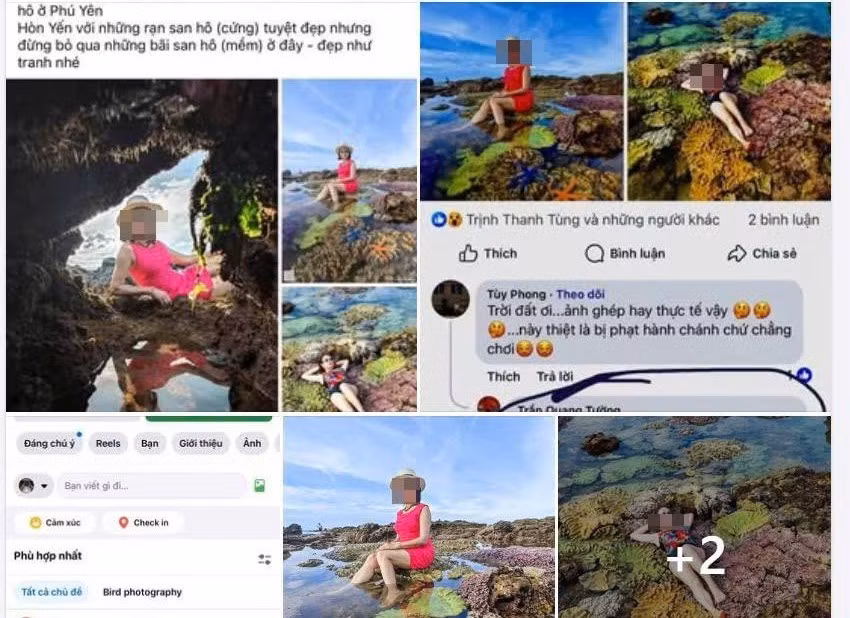 Hình ảnh du khách ngồi, nằm trên san hô gây phản cảm.