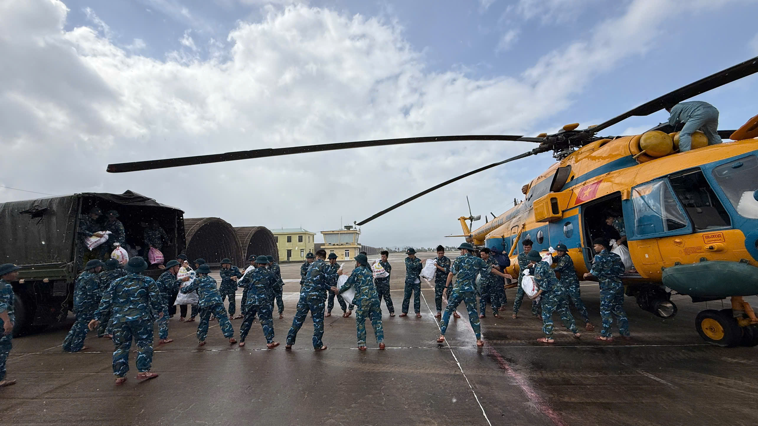 Toàn bộ số nhu yếu phẩm này đã được vận chuyển lên máy bay trực thăng để vận chuyển tới sân vận động Tiên Châu, xã Tuy An Đông (tỉnh Đắk Lắk), khu vực vẫn đang bị ngập nặng do mưa lũ, đời sống người dân rất khó khăn. Các chiến sĩ nhanh chóng phối hợp với chính quyền địa phương tặng những phần quà tới người dân.