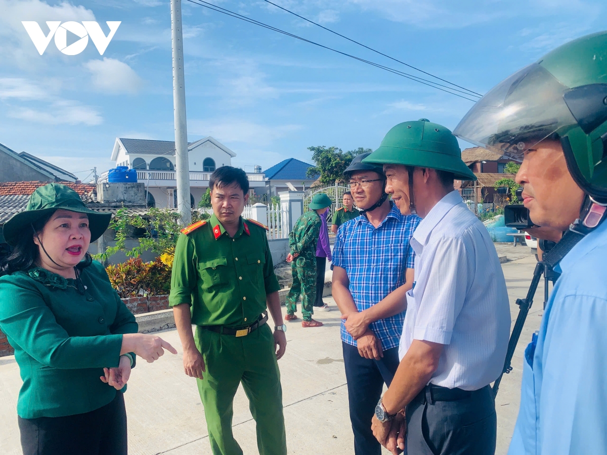 Bà Cao Thị Hòa An - Phó Bí thư Tỉnh ủy Đắk Lắk chỉ đạo công tác phòng tránh bão số 13 tại xã Tuy An Nam