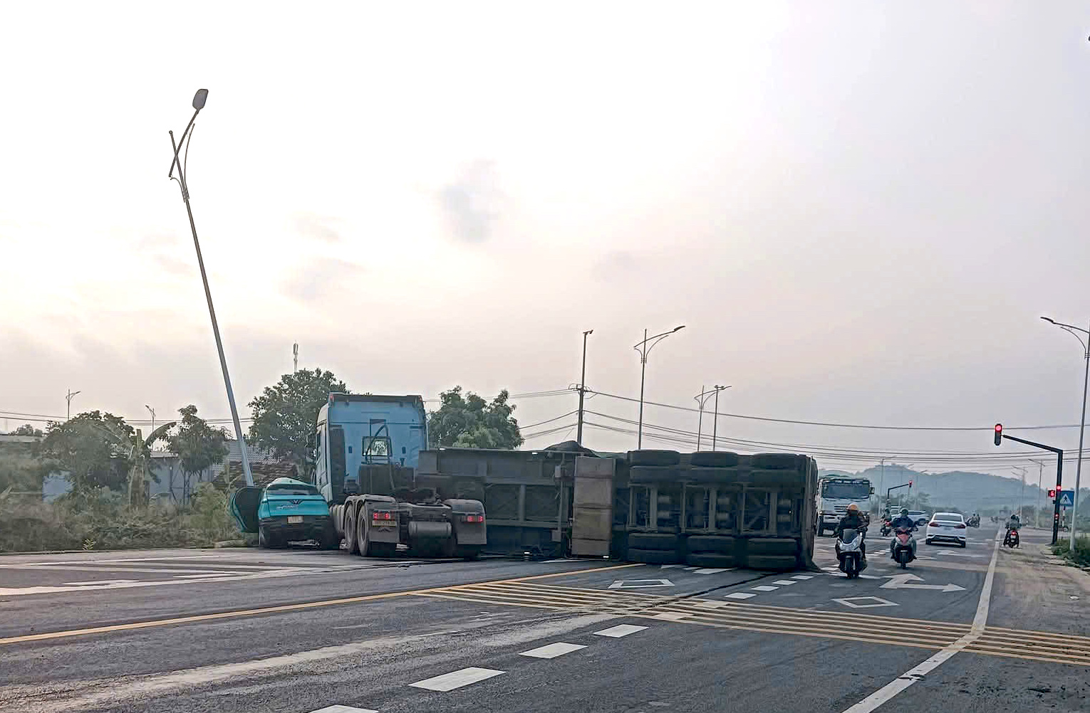 Theo cơ quan chức năng, nguyên nhân ban đầu được xác định do tài xế xe đầu kéo không giảm tốc độ khi đi đến khu vực giao nhau.