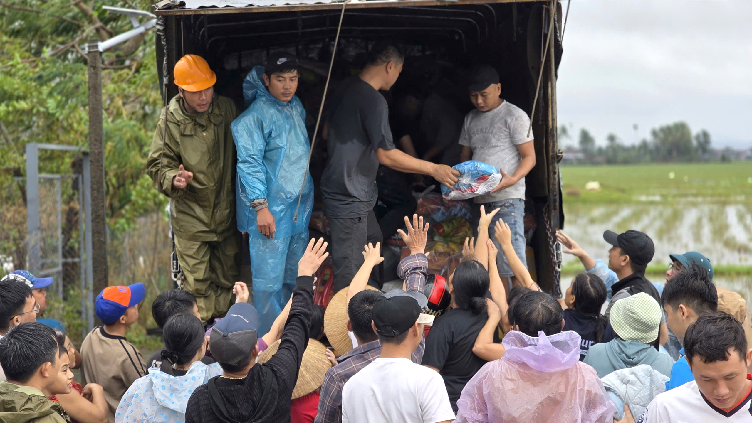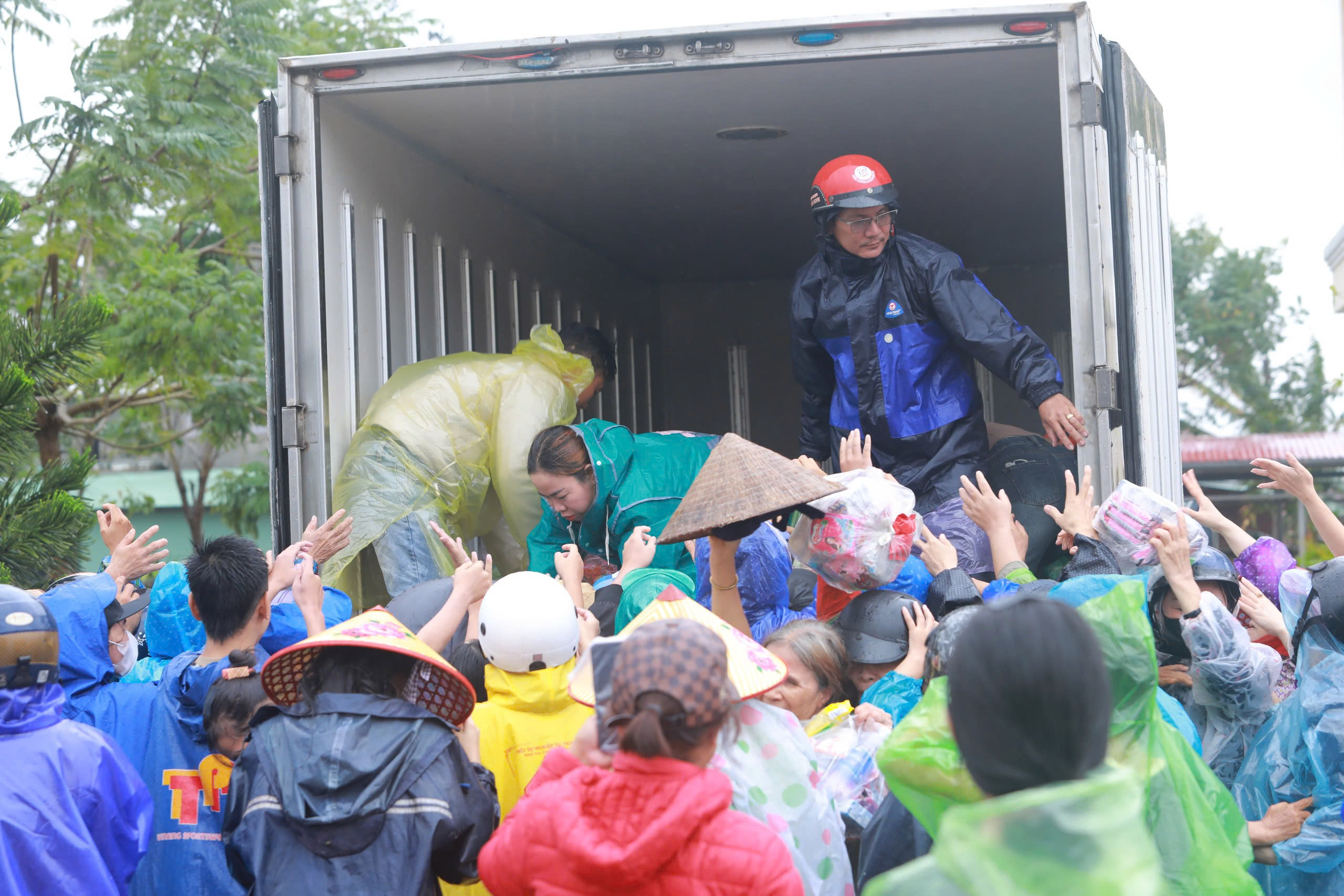 Trong lúc người dân hoạn nạn, các nhóm thiện nguyện đã vượt đường ngập, mang theo chăn mền, quần áo, sữa và gạo đến từng thôn xóm, giúp bà con tạm vượt qua những ngày đầu sau lũ.