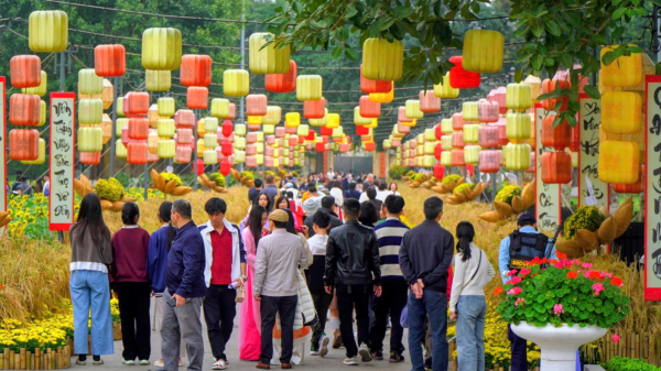 Đường hoa Tết tại khu di sản Hoàng thành Thăng Long - Hà Nội tấp nập khách du xuân.