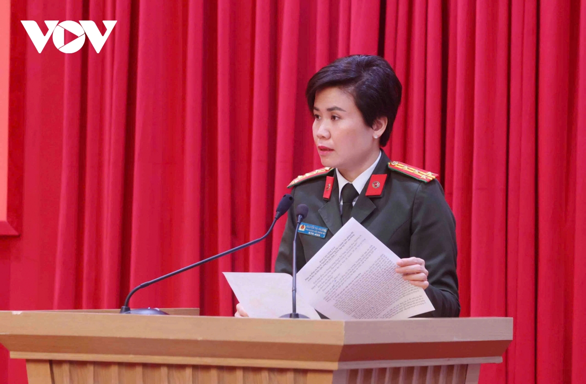Đại tá Nguyễn Thị Phượng, Phó chánh văn phòng Bộ Công an phát biểu tại hội nghị