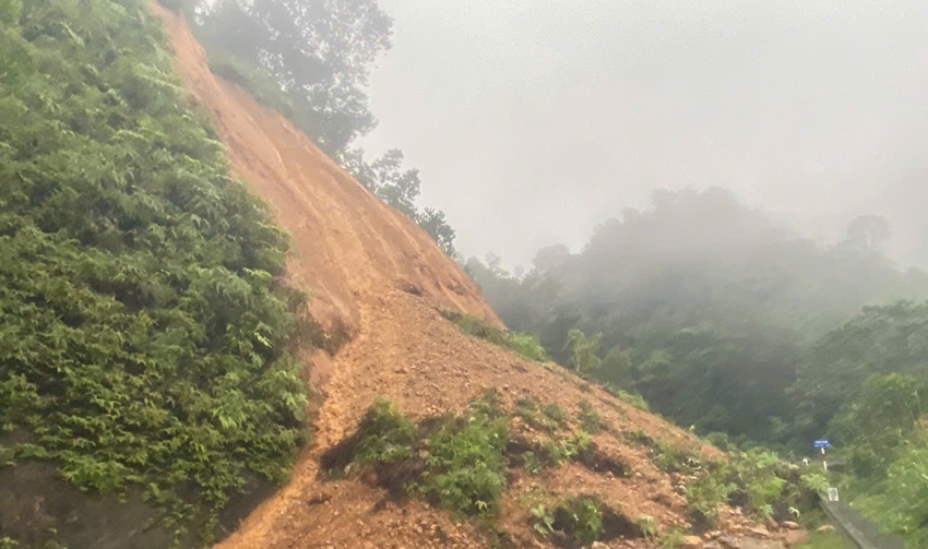 Điểm sạt lở taluy dương tại Km67+800 trên Quốc lộ 49 vào sáng nay (17/11). Ảnh: Dương Huy
