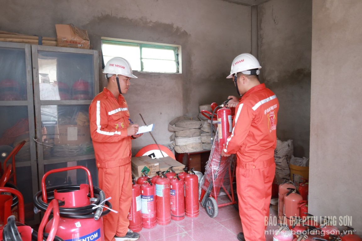 Cán bộ Đội PCCC, Công ty cổ phần xi măng Đồng Bành kiểm tra thiết bị chữa cháy tại đơn vị