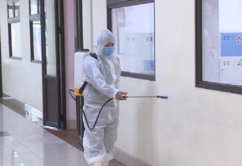 Nhiều trường học phun hóa chất khử khuẩn sau kỳ nghỉ Tết.