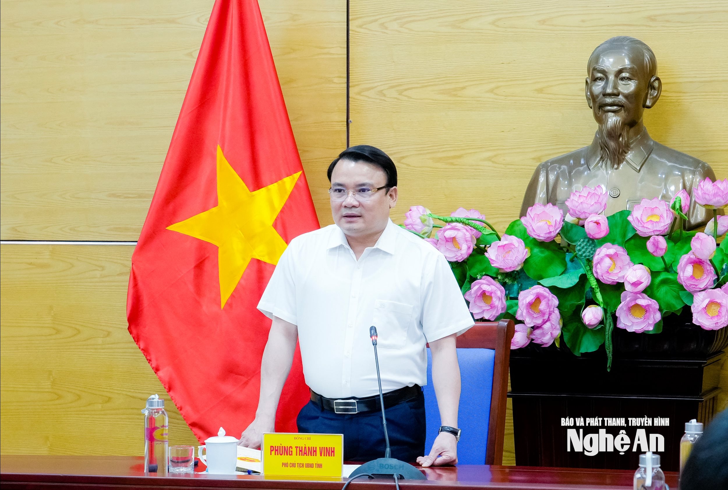 Phó Chủ tịch UBND tỉnh Phùng Thành Vinh kết luận cuộc làm việc. Ảnh: Phạm Bằng