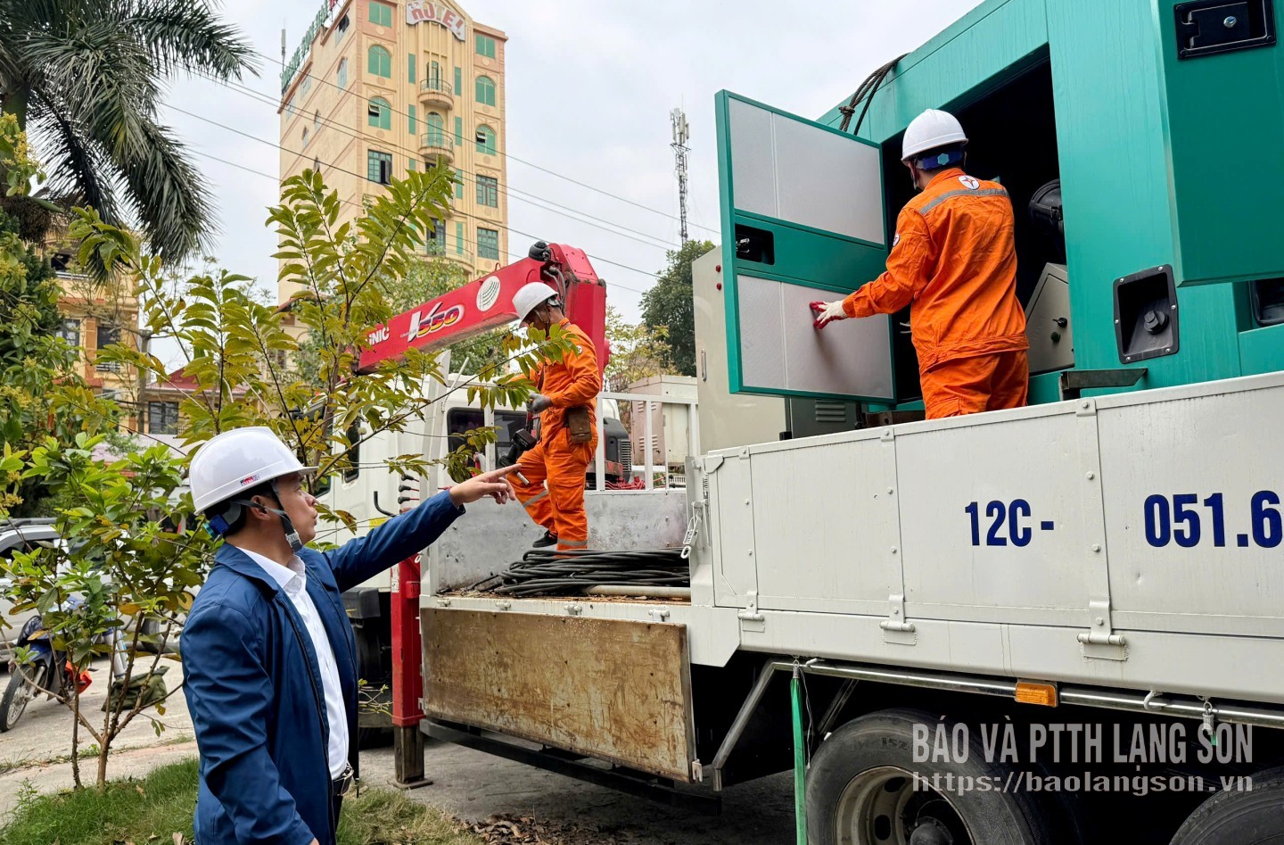 Điện lực xứ Lạng lắp đặt, bố trí trạm phát điện lưu động để đảm bảo cấp điện khi có sự cố tại các đơn vị bầu cử trên địa bàn phường Tam Thanh