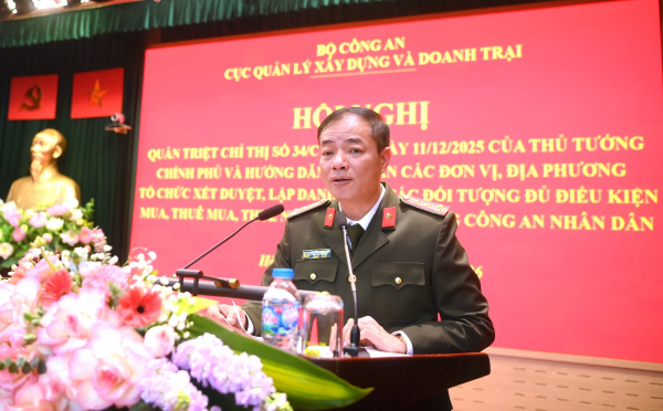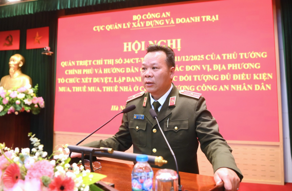 Hội nghị được tổ chức nhằm quán triệt Chỉ thị 34/CT-TTg ngày 11/12/2025 của Thủ tướng Chính phủ về việc chấn chỉnh, tăng cường minh bạch, phòng ngừa tiêu cực trong việc xét duyệt, mua – bán, cho thuê nhà ở xã hội. Hướng dẫn Công an các đơn vị, địa phương việc tổ chức xét duyệt, lập danh sách các đối tượng đủ điều kiện mua, thuê mua, thuê nhà ở tại các dự án nhà ở cho lực lượng vũ trang CAND bảo đảm phù hợp quy định.