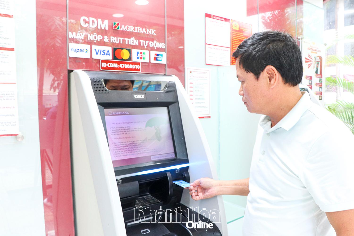Người dân giao dịch tại máy nộp và rút tiền tự động.
