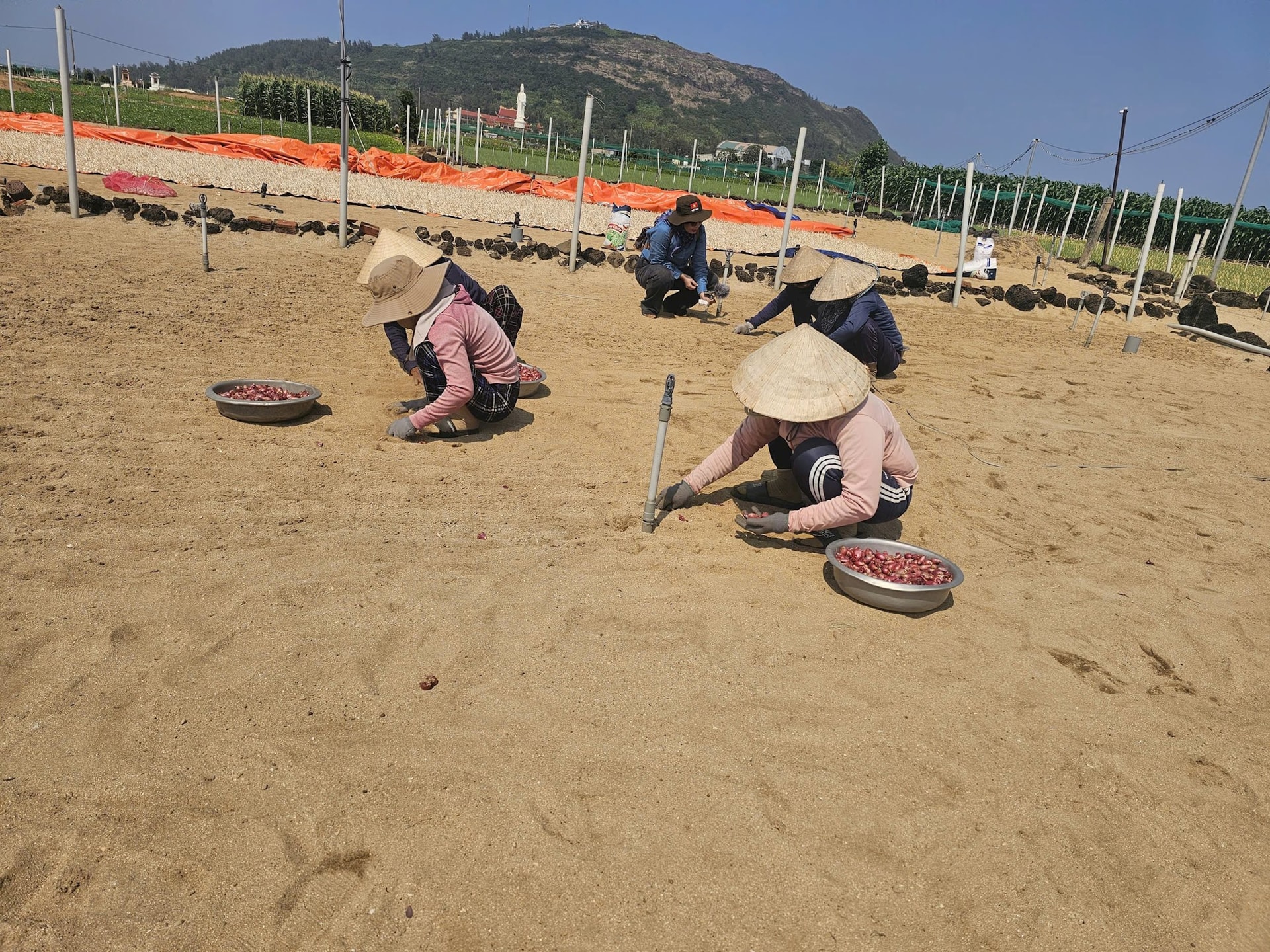Người dân Lý Sơn xuống giống hành tím, tiết kiệm nước để phục vụ tưới.