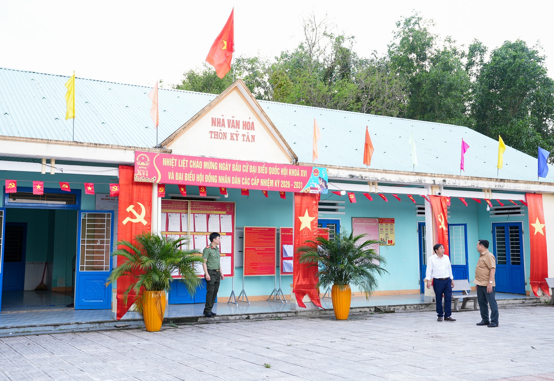 Khu vực bỏ phiếu số 4, thôn Kỳ Tân, xã Phú Ninh đã hoàn tất các bước chuẩn bị, sẵn sàng cho ngày bầu cử. Ảnh: HỒ QUÂN