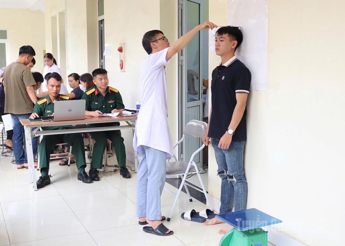 Thanh niên xã Yên Sơn tham gia khám sơ tuyển nghĩa vụ quân sự.